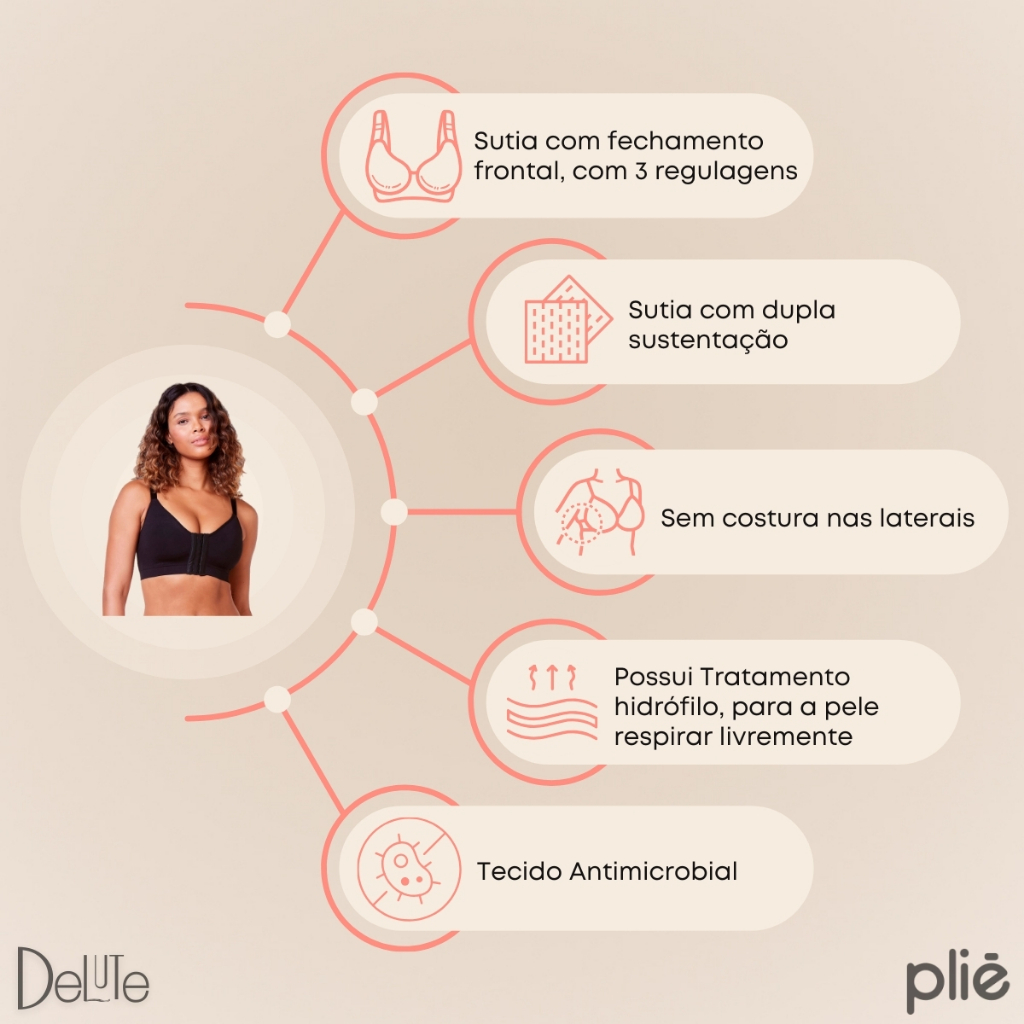 Sutia Plie Sem Bojo de Alta Sustentacao com Alcas Largas e Ajustaveis sem Costura Lateral Reforcado