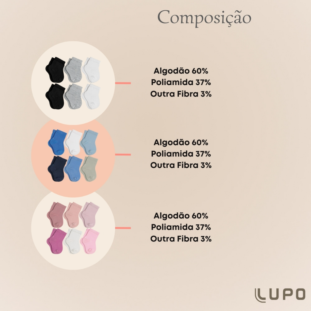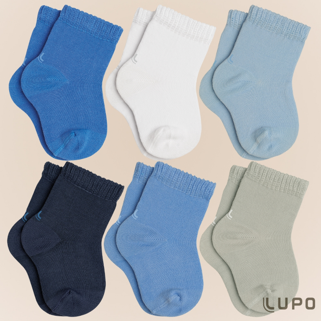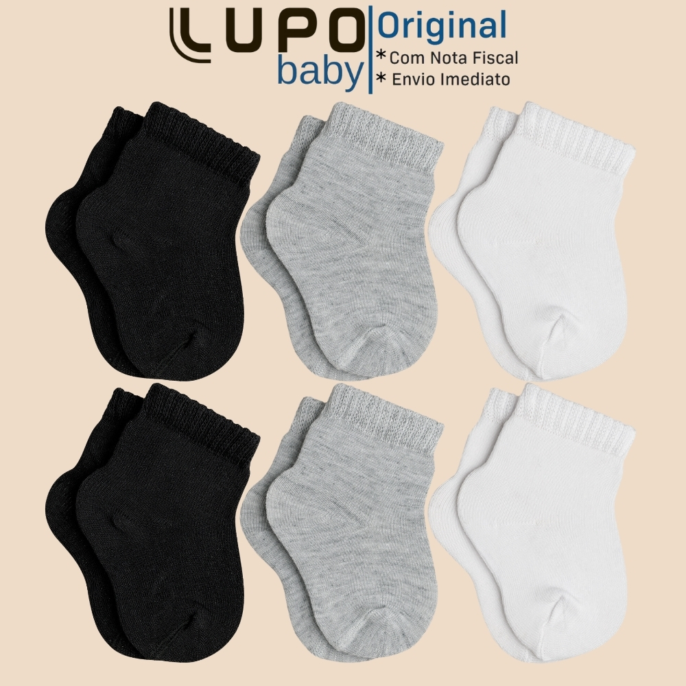 Kit com 6 Pares de Meias Lupo Baby Cano Curto sem Estampa Basica Lisa Kids Infantil em Algodao
