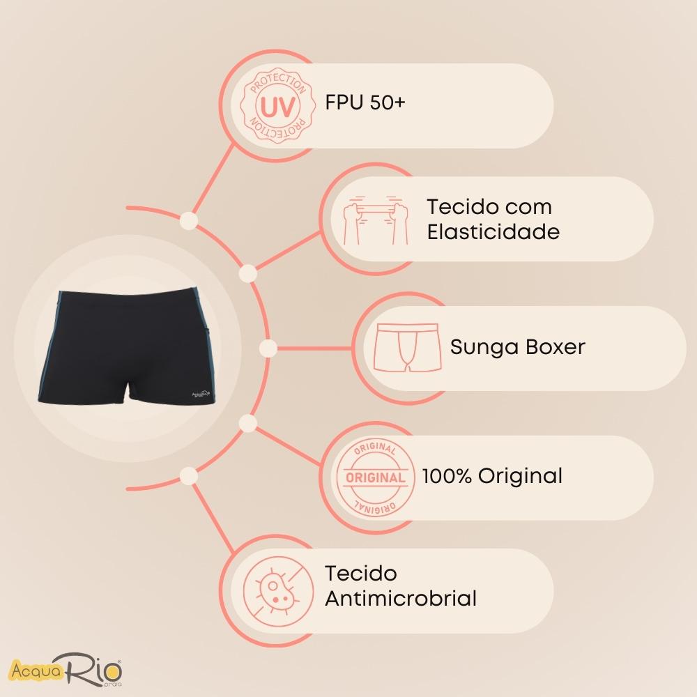 Sunga Boxer Acqua Rio Moda Praia Masculina Verao Com Bolso