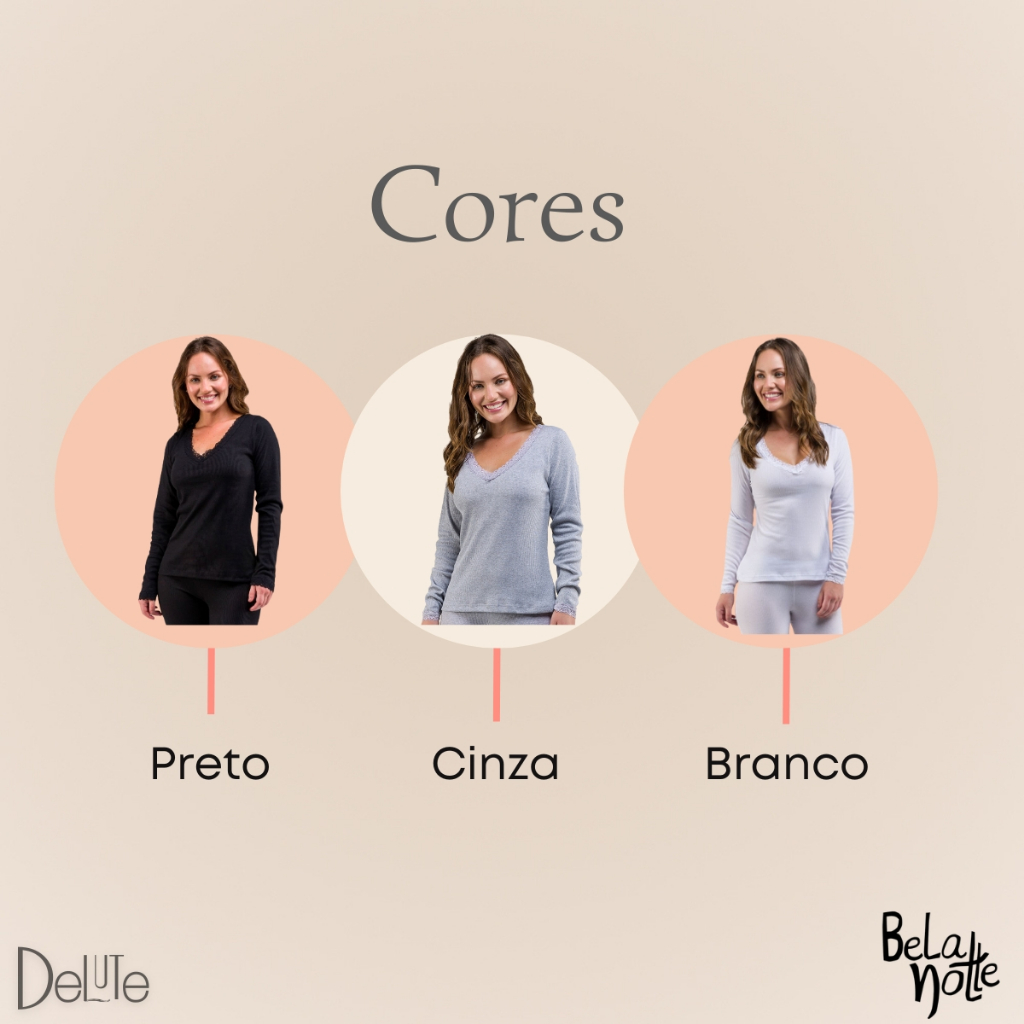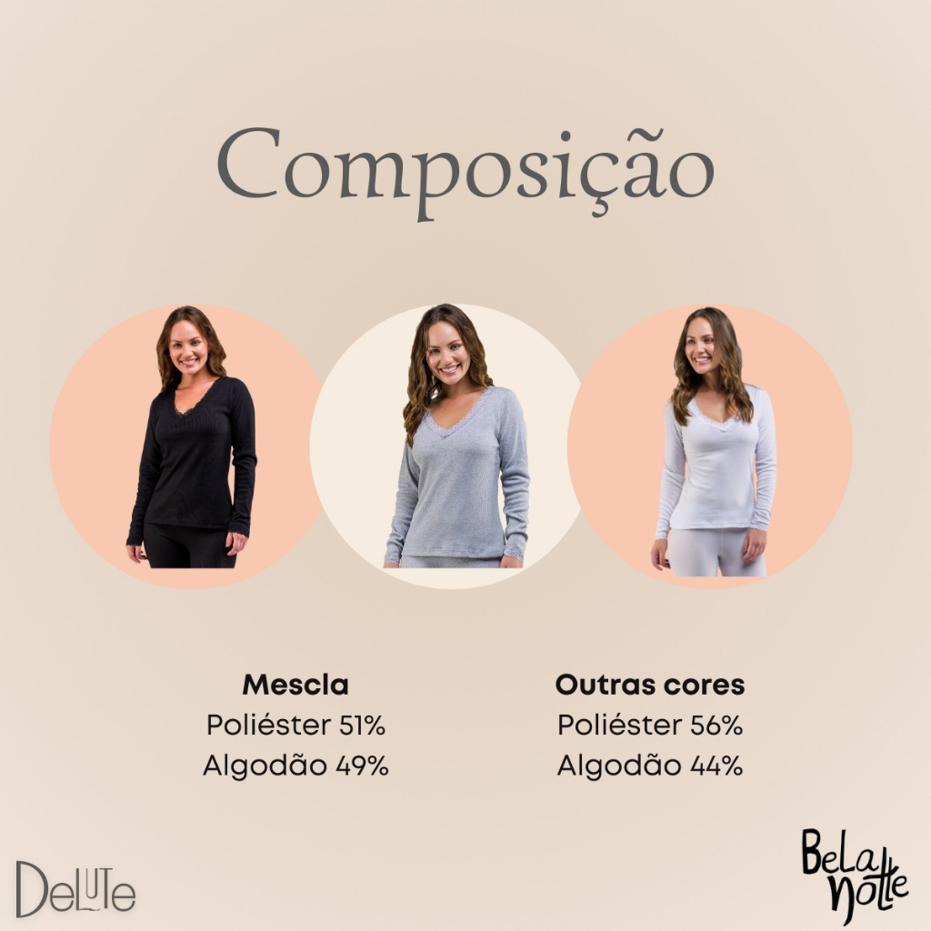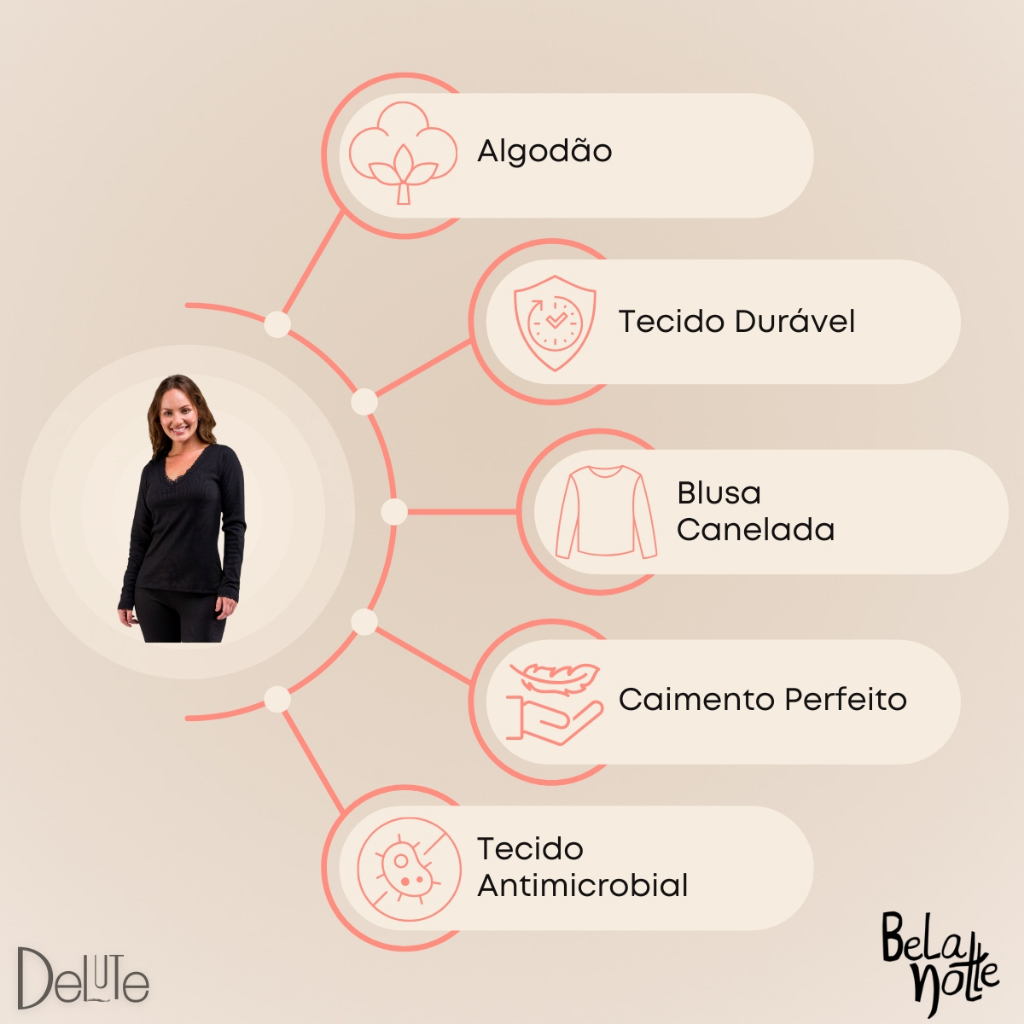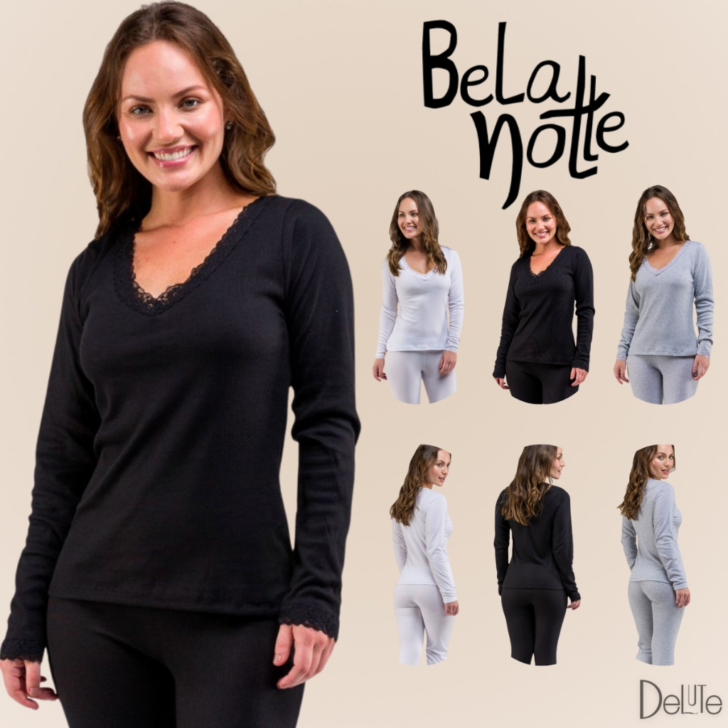 Blusa Feminina Manga Longa Canelada Gola V com Detalhe em Renda Basica Adulto Ribana Confortavel