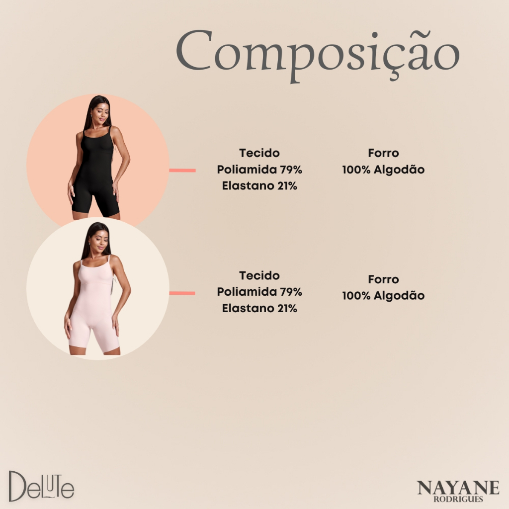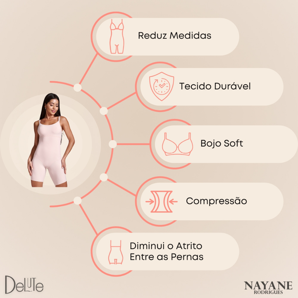 Body Short Redulip Modelador Cinta Feminina com Compressão Redutora e Bojo Soft Nayane Rodrigues