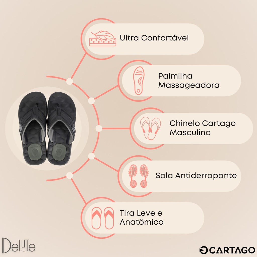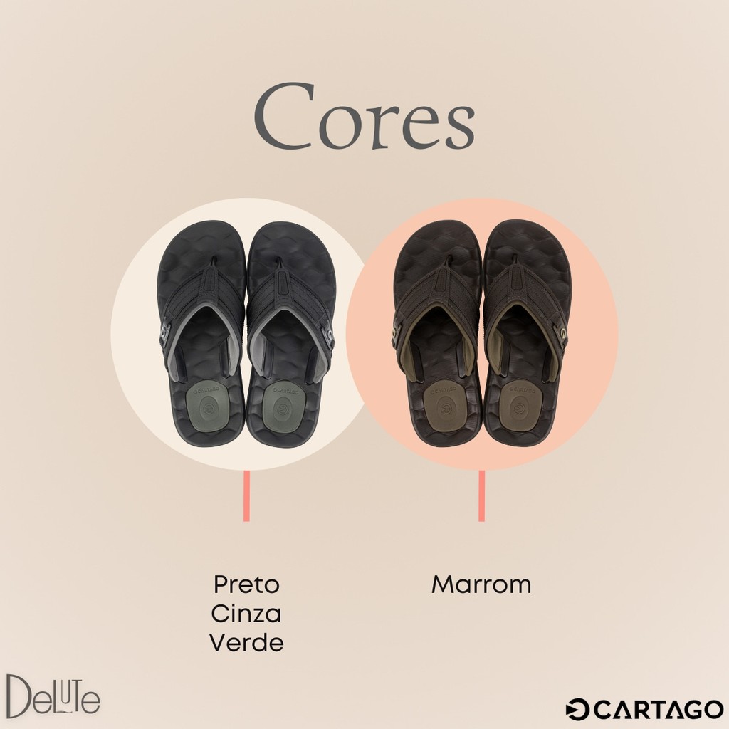 Chinelo Masculino Cartago Casual Modelo Egeu III Palmilha Massageadora Ultra Confortável