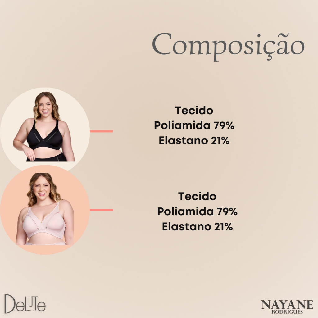 Sutiã Feminino Plus Size Nayane Rodrigues Sem Bojo Aro Reforçado e Recorte Anatômico para Conforto