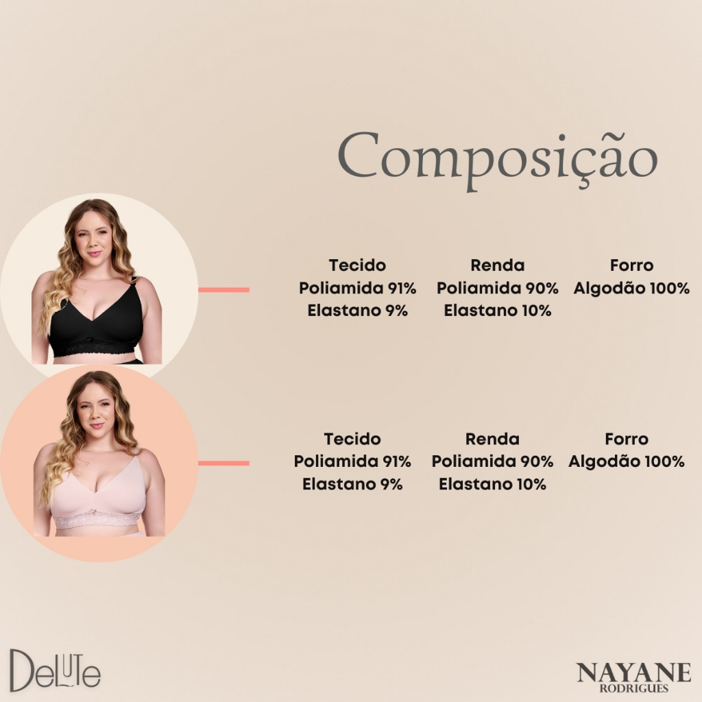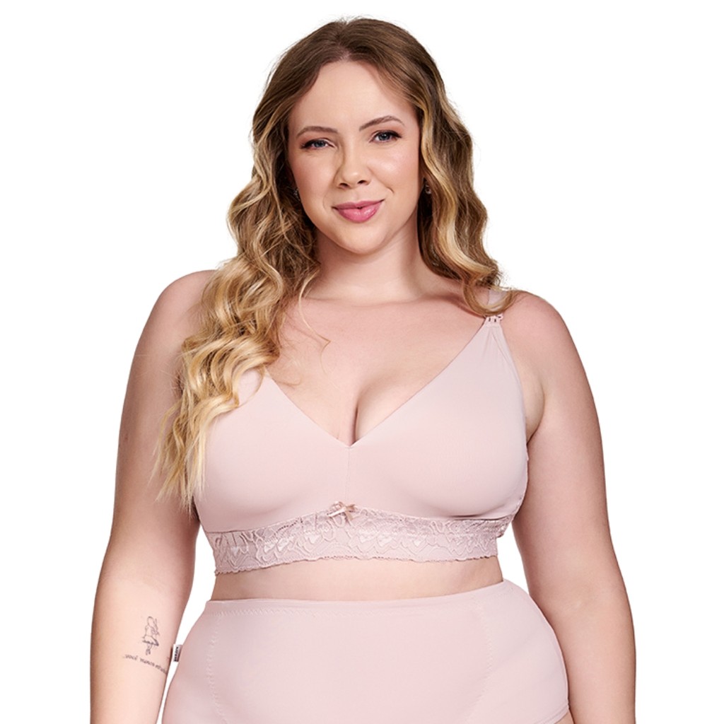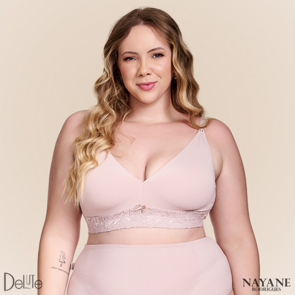 Sutiã Plus Size Mãe Nayane Rodrigues Pós-Parto e Amamentação Confortável Rendado com Fecho Fácil