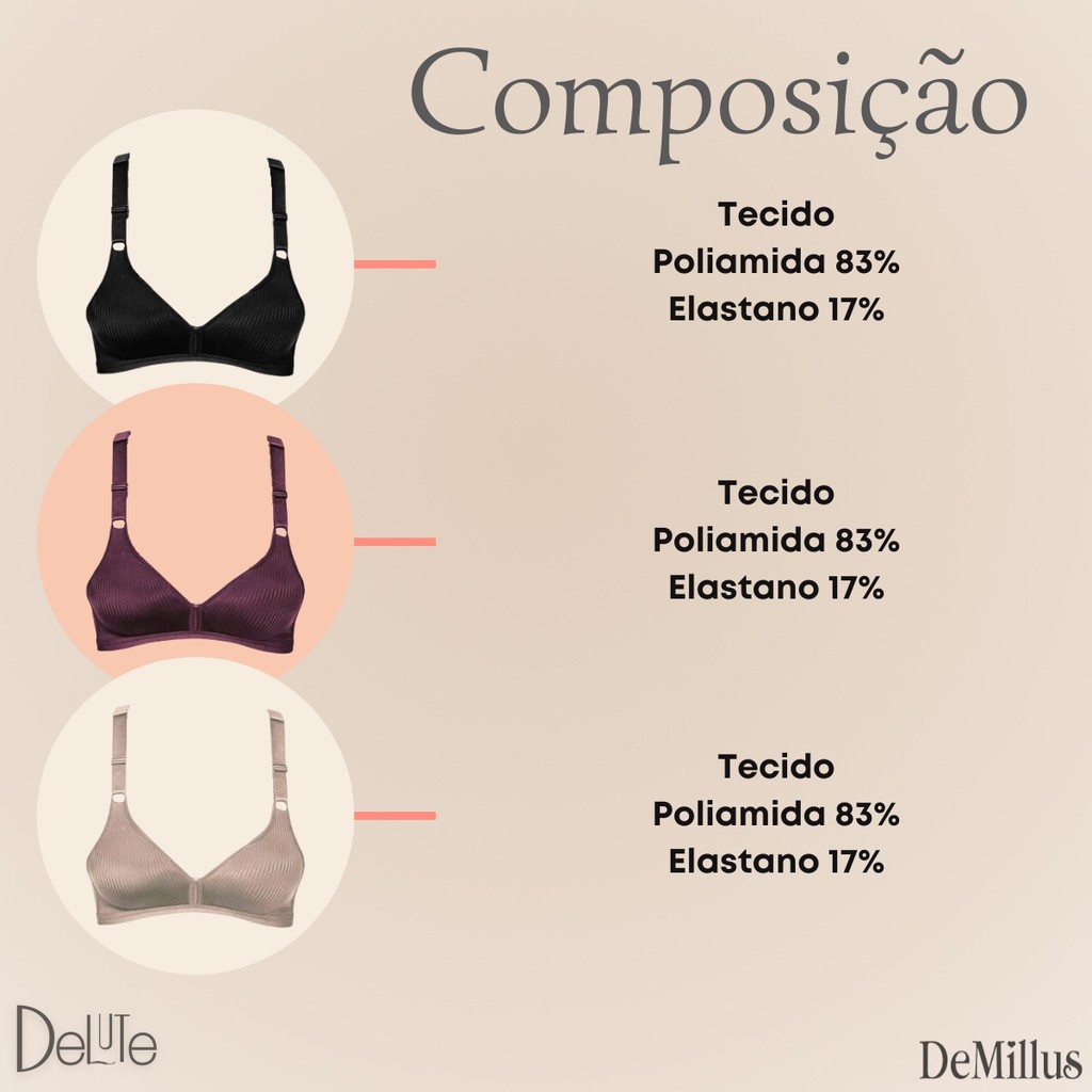 Sutiã Demillus Olimpo Bourbon Adulto Alta Sustentação Sem Bojo Com Alças Largas Ajustáveis Sem Aro