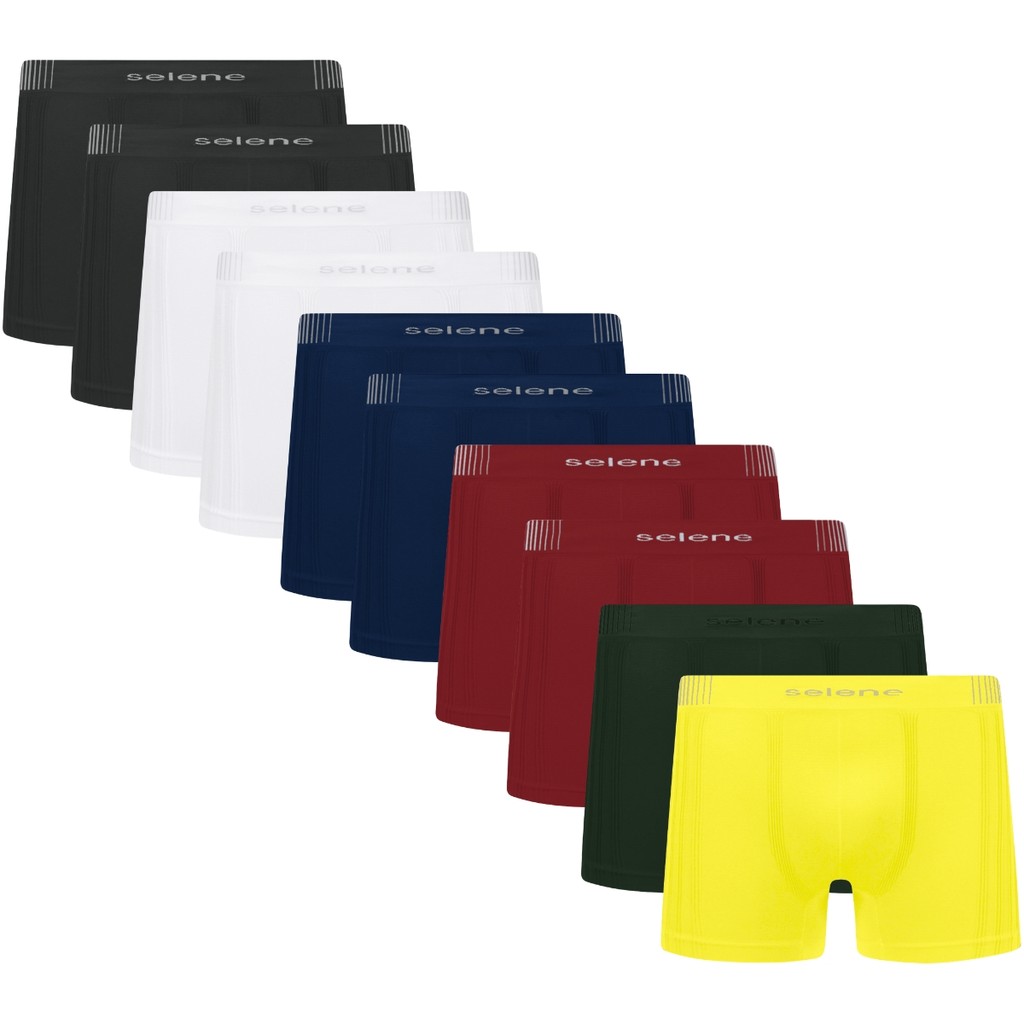 Kit com 10 Cuecas Boxer Selene Masculina Sem Costura Anatômica