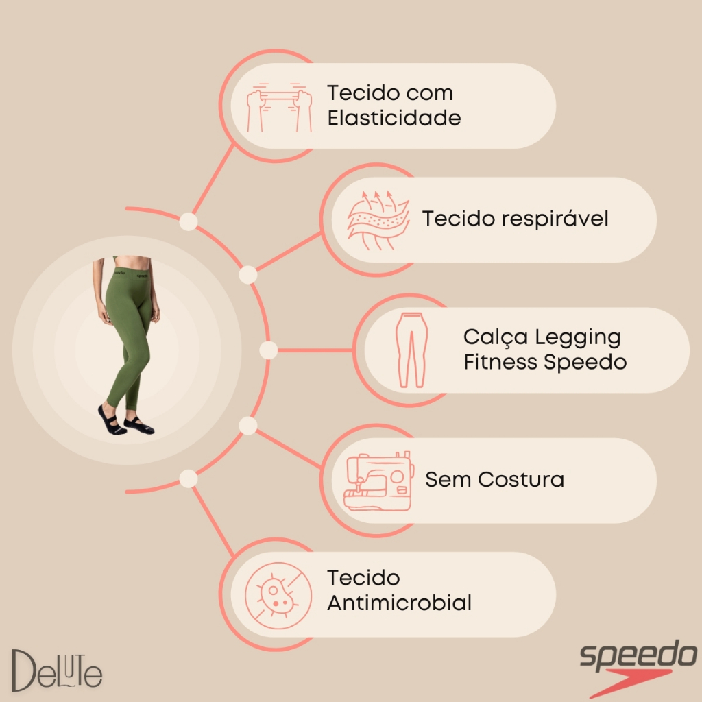 Calca Legging Speedo Feminina Cos Duplo Sustentacao Conforto Treino Corrida Yoga Uso Diario