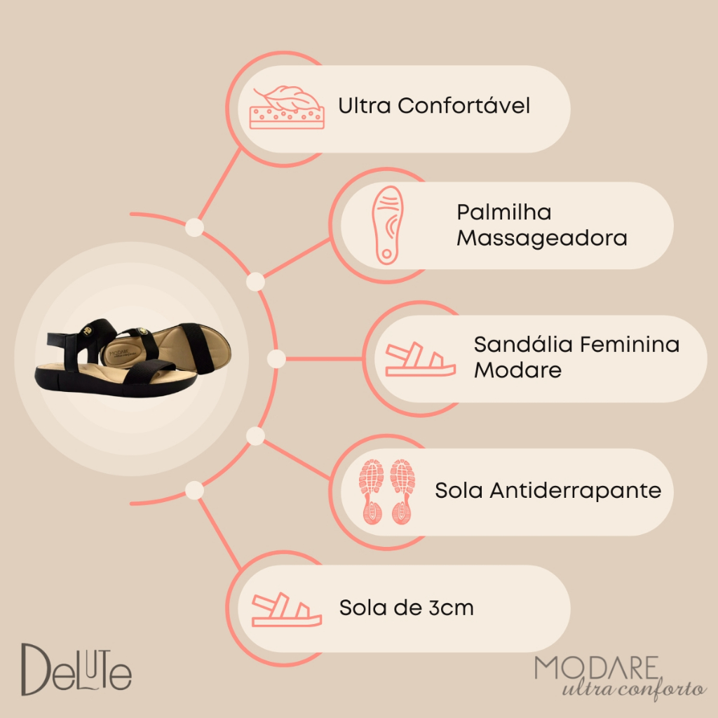 Sandalia Feminina Modare Conforto Palmilha Massageadora Salto Medio Solado Antiderrapante Ultramacia