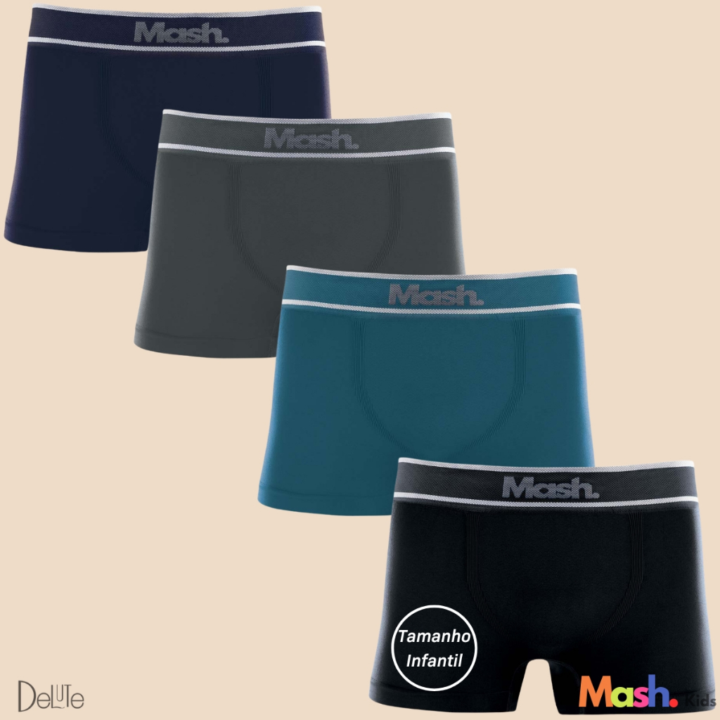 Kit 4 Cueca Boxer Infantil Mash Sem Costura Microfibra Conforto e Ajuste Perfeito