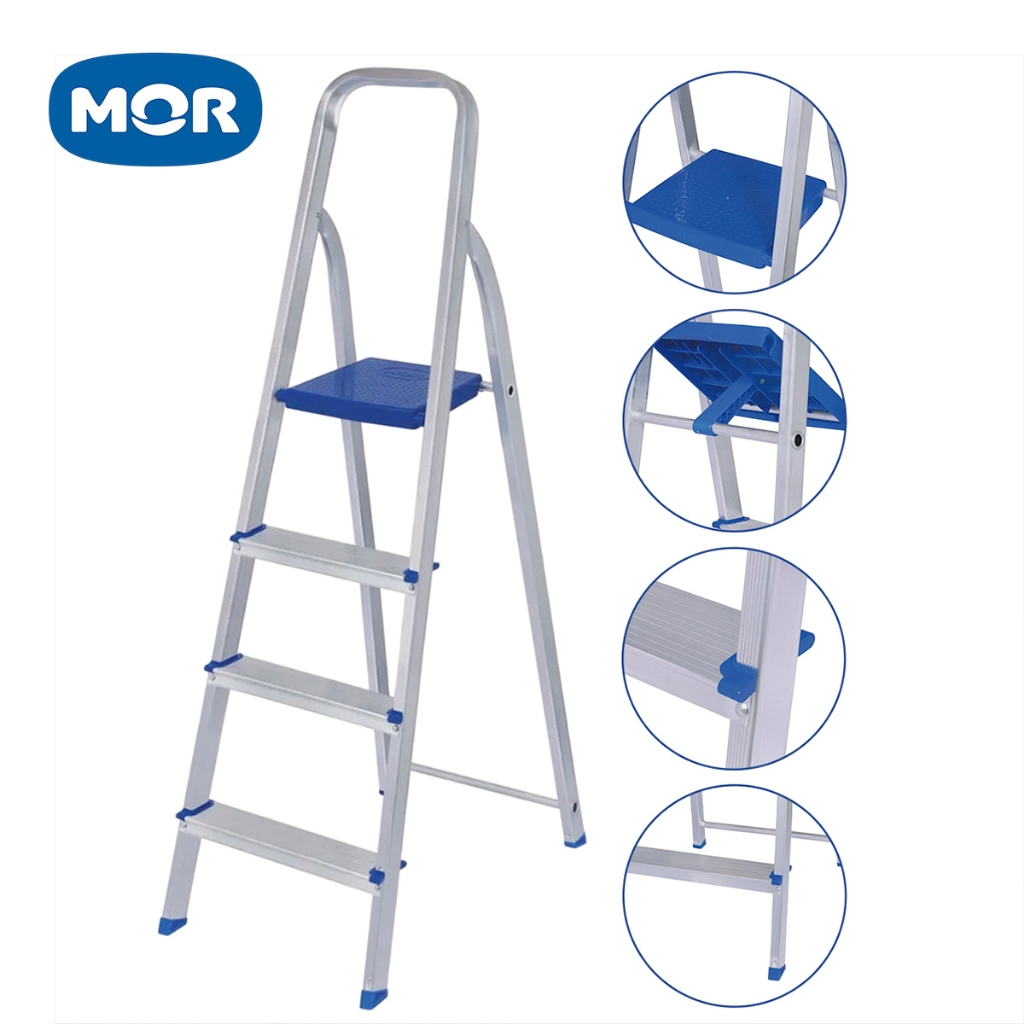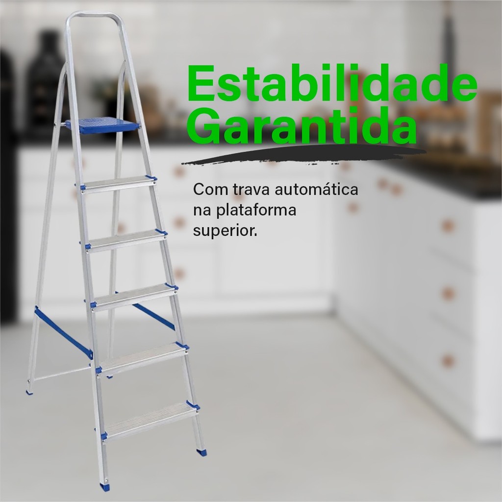 Escada De Alumínio Doméstica 3 e 4 Degraus Reforçada Resistente MOR