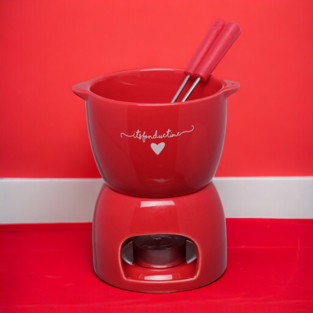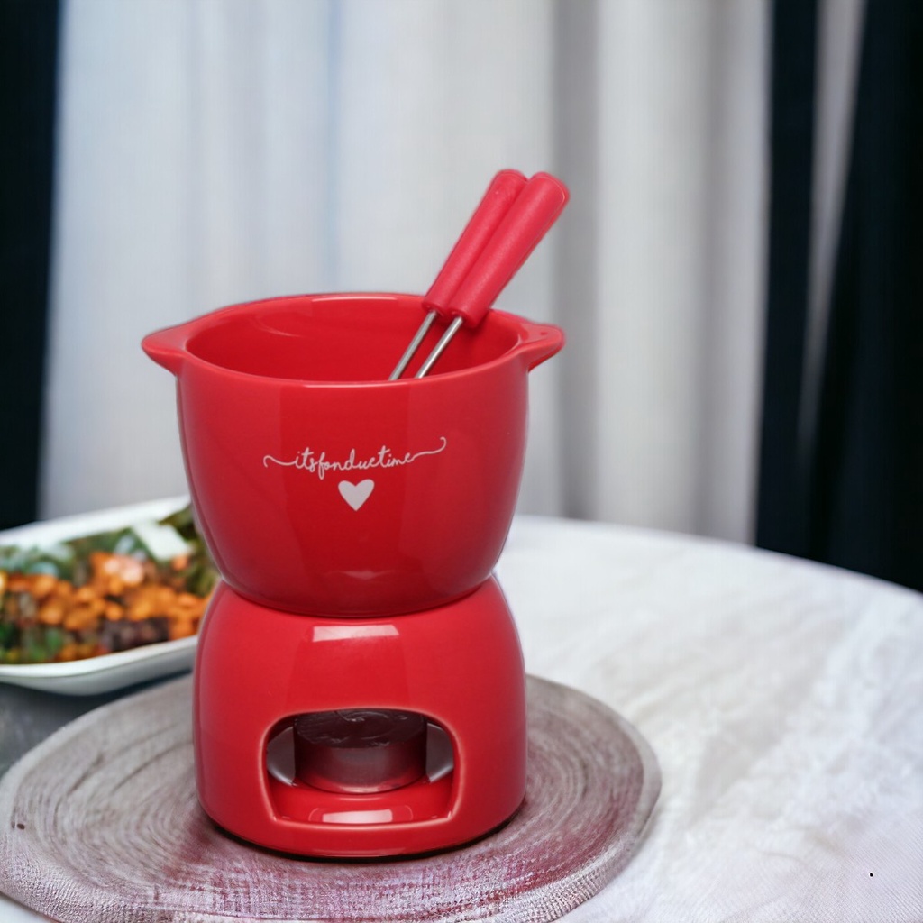 Conjunto Para Fondue De Porcelana Lamour Vermelho 5 Peças 300ml Hauskraft