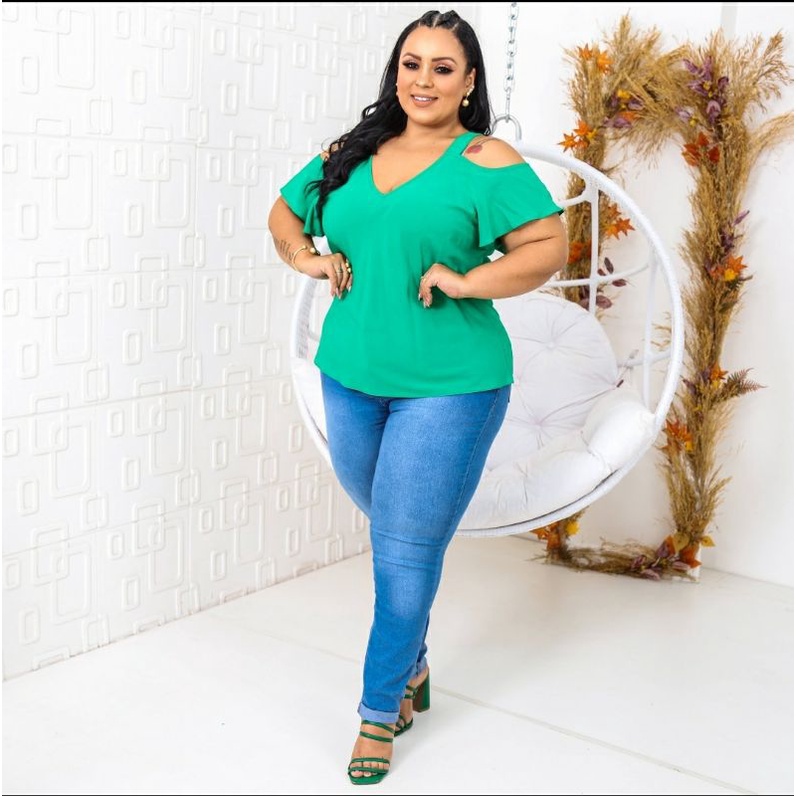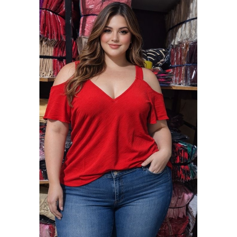 BLUSA PLUS SIZE CIGANA ALÇA LARGA TEÇIDO DUNA
