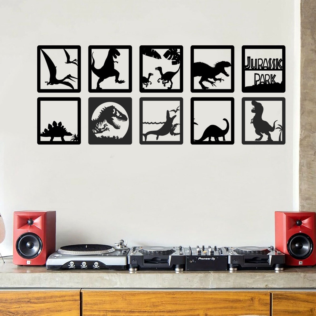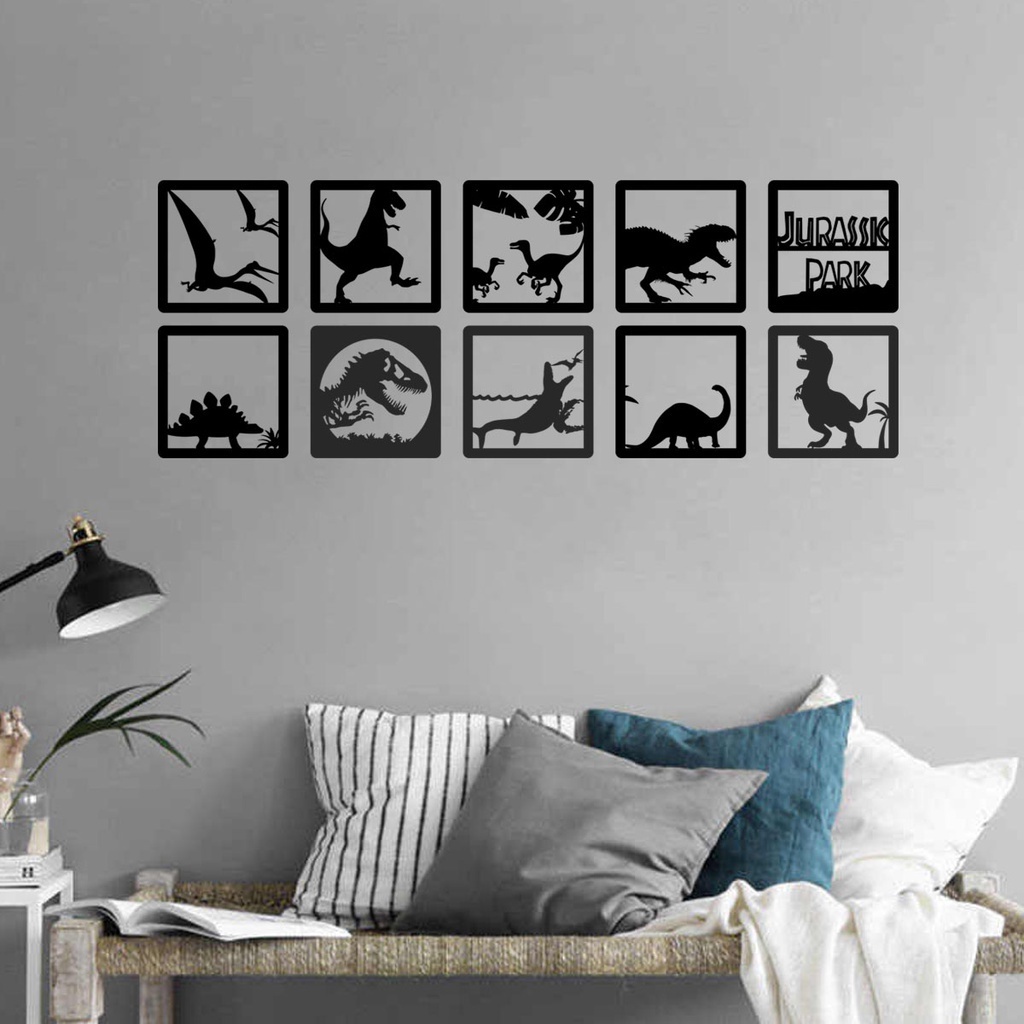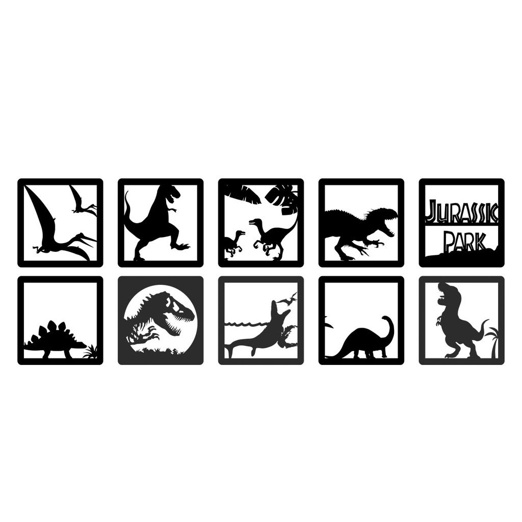 Kit 10 Mini Quadros Vazados Jurassic Park Dinos Decoração em Mdf 3mm Decoração Quarto