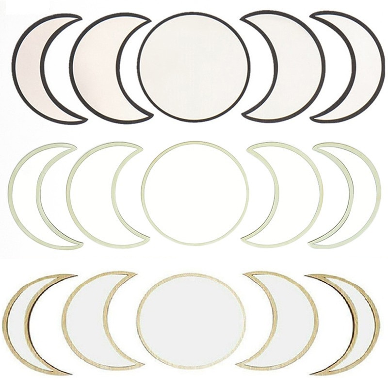 Kit 5 Peças Espelho Acrílic Fases Da Lua com Moldura MDF Decoração De Parede Sala De Estar/Quarto/Escritório Promoção