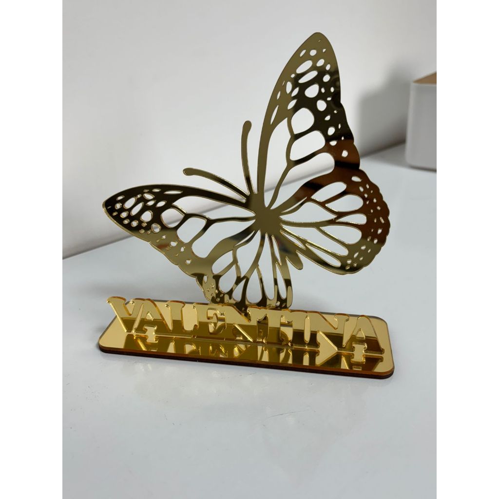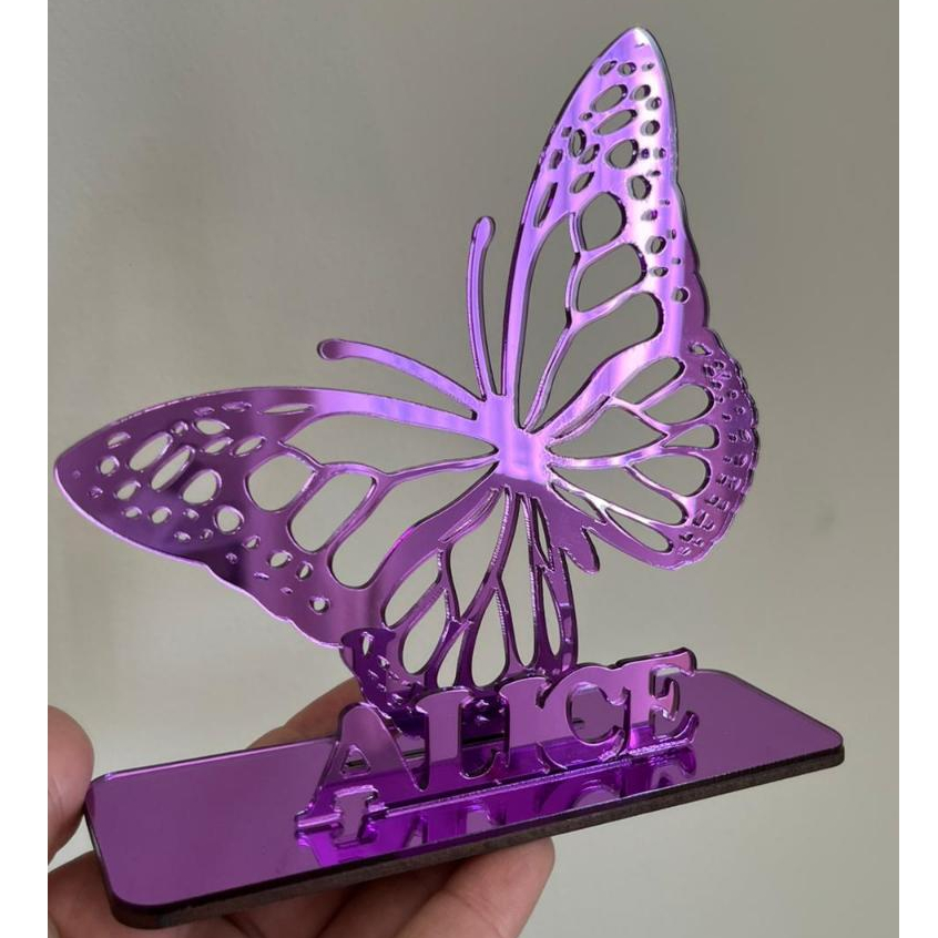 Centro de Mesa Topo de Bolo Sthich ou Borboleta com Nome Personalizado em Acrílico Lembrancinha Festas Aniversário