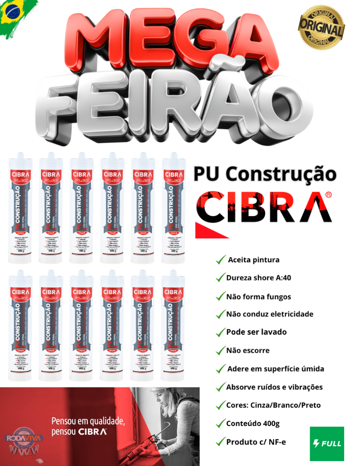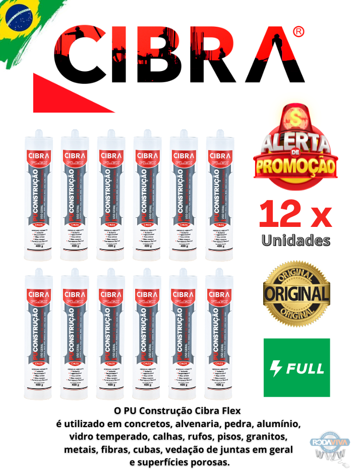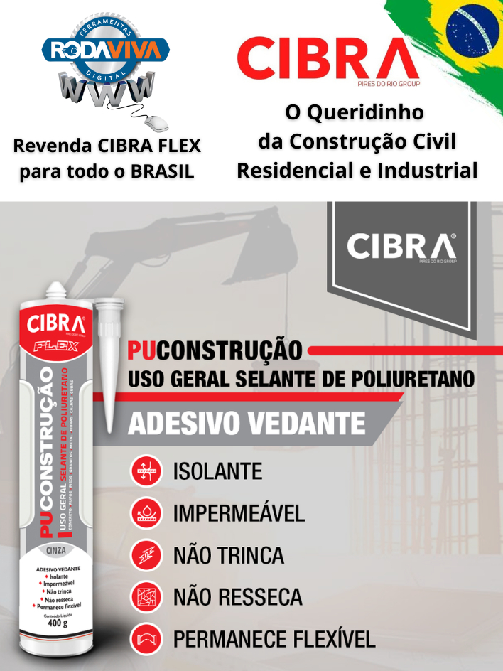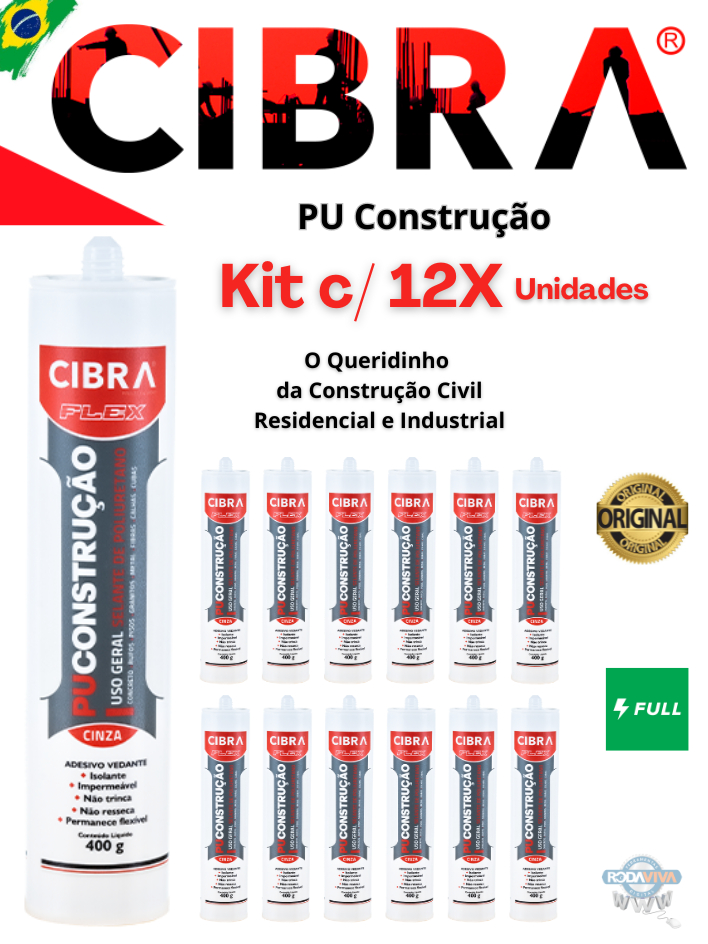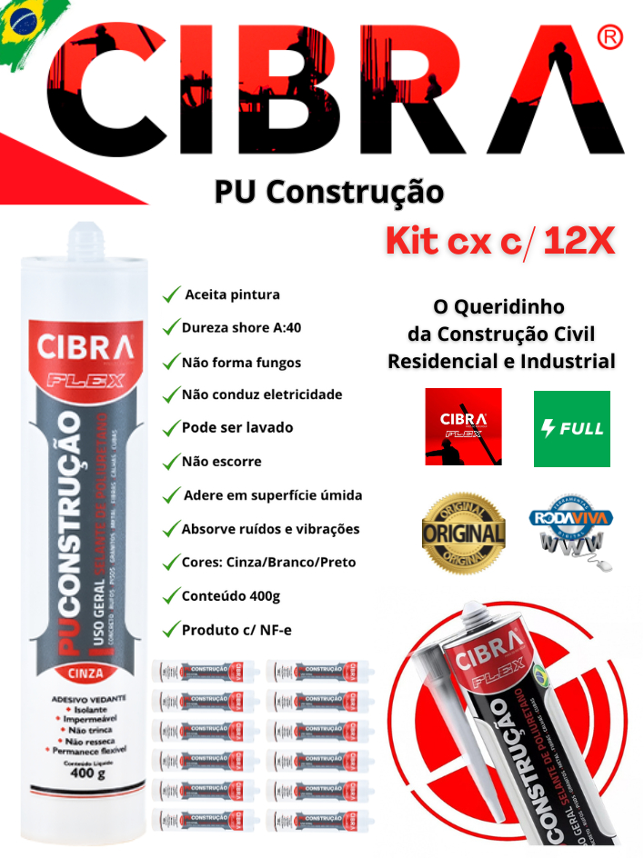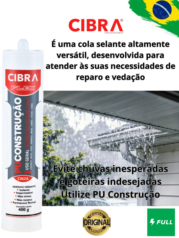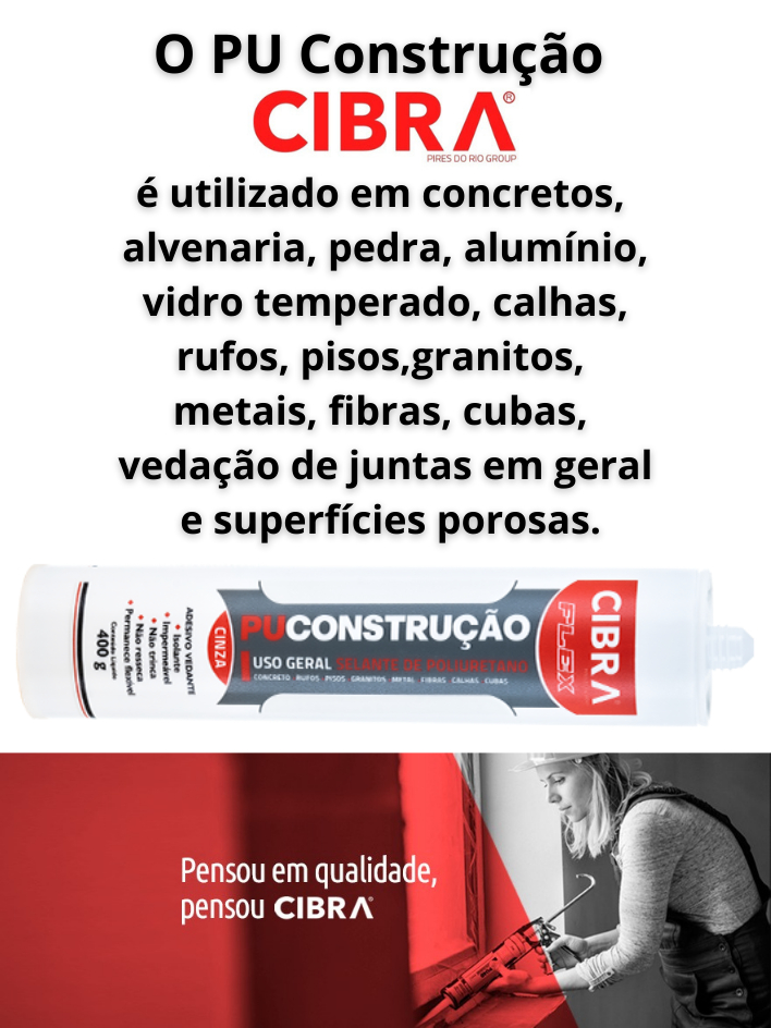 Cola Selante Pu 40 De Poliuretano Cibra Flex 400g Cinza Cx c/ 12 Unidades p/ Calhas Telhados