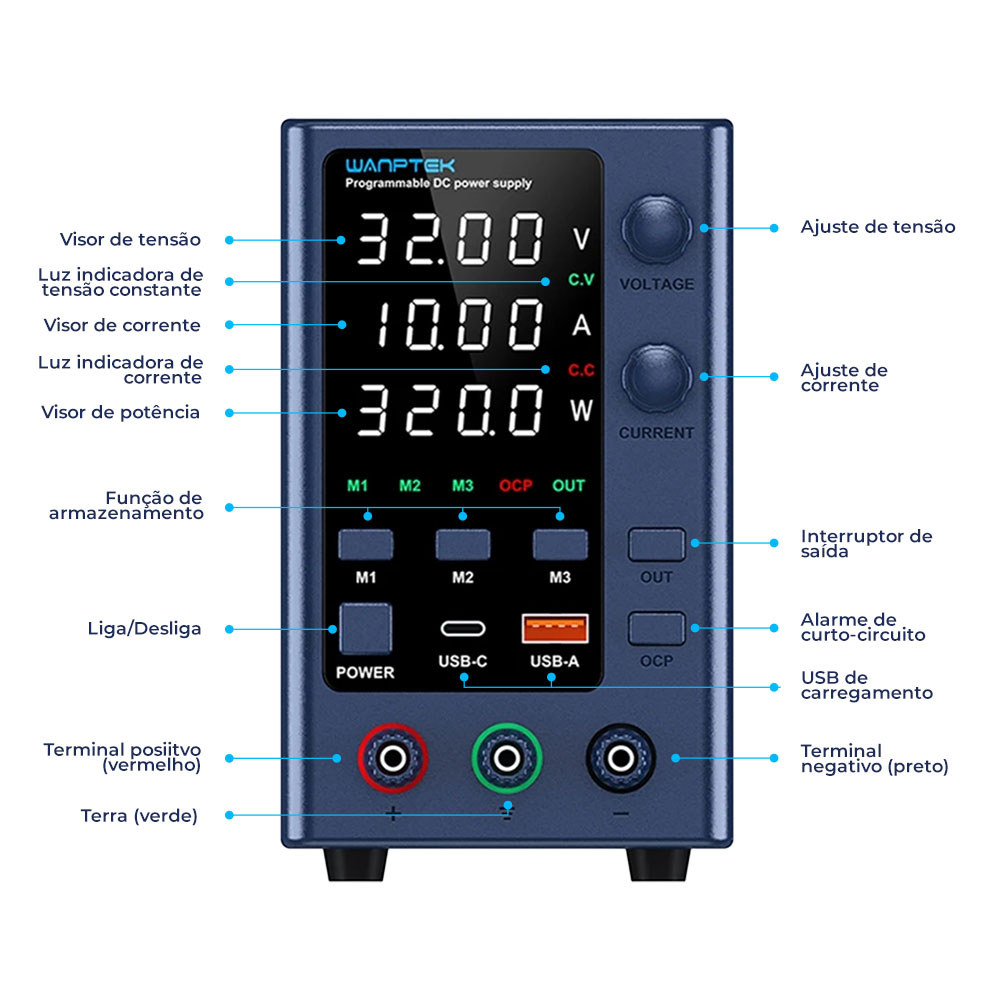Fonte de Bancada Wanptek EPS3210 32V 10A 320W