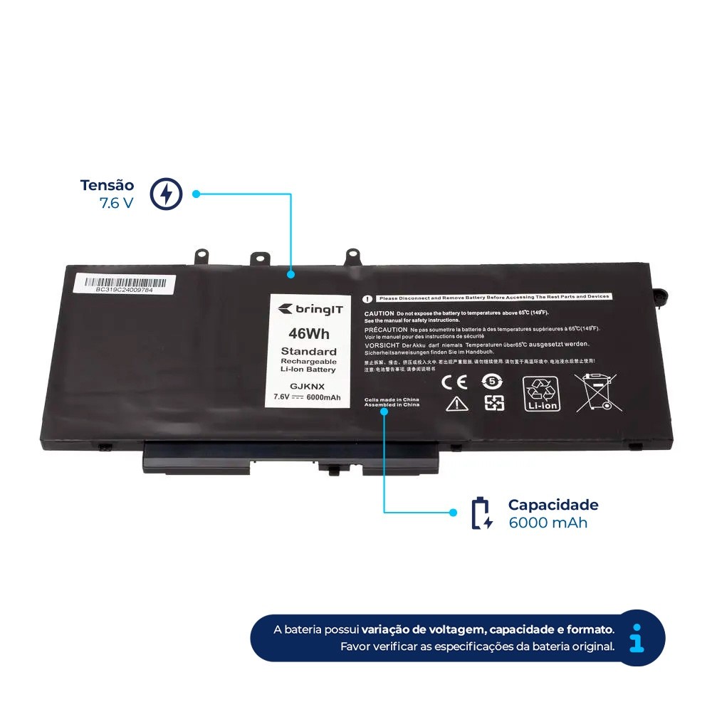 Bateria para Notebook Dell Part Number GJKNX 6000 mAh