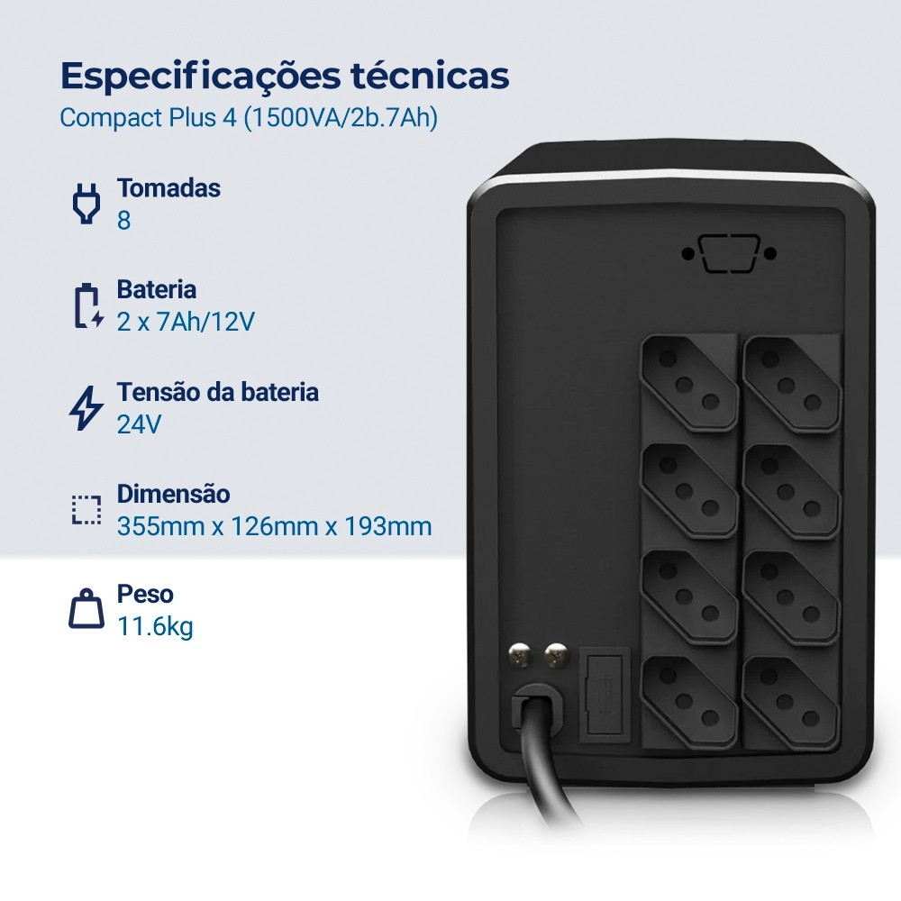Nobreak NHS Compact Plus 4 90.D1.B01500 Entrada Bivolt Saída 120V (1500VA/2b.7Ah)
