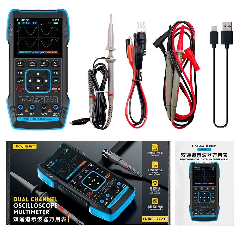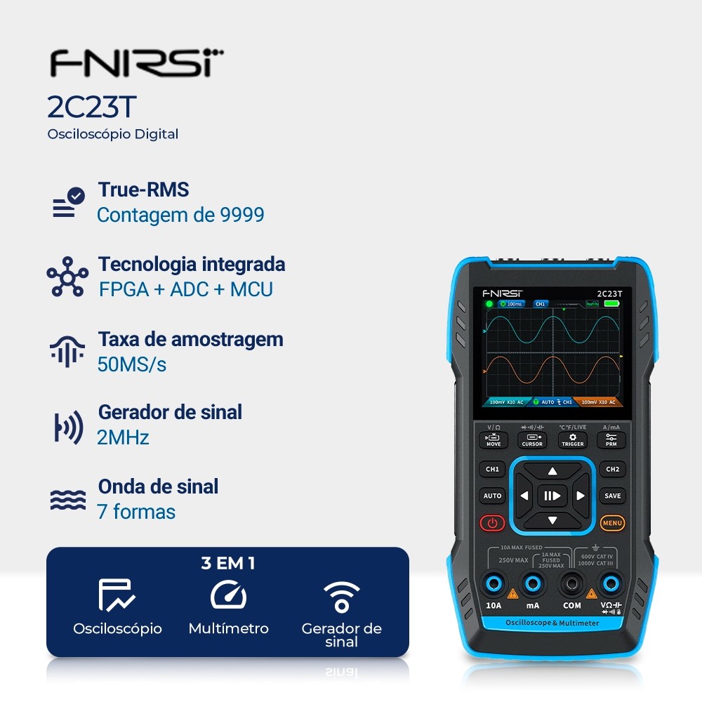 Mini Osciloscópio Digital FNIRSI 2C23T Portátil