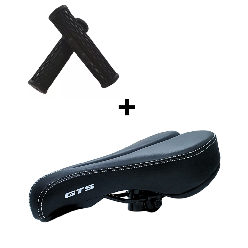 Kit Selim Banco Bike Mtb Vazado Couro Confortável Gts Com Manoplas Modelo 211