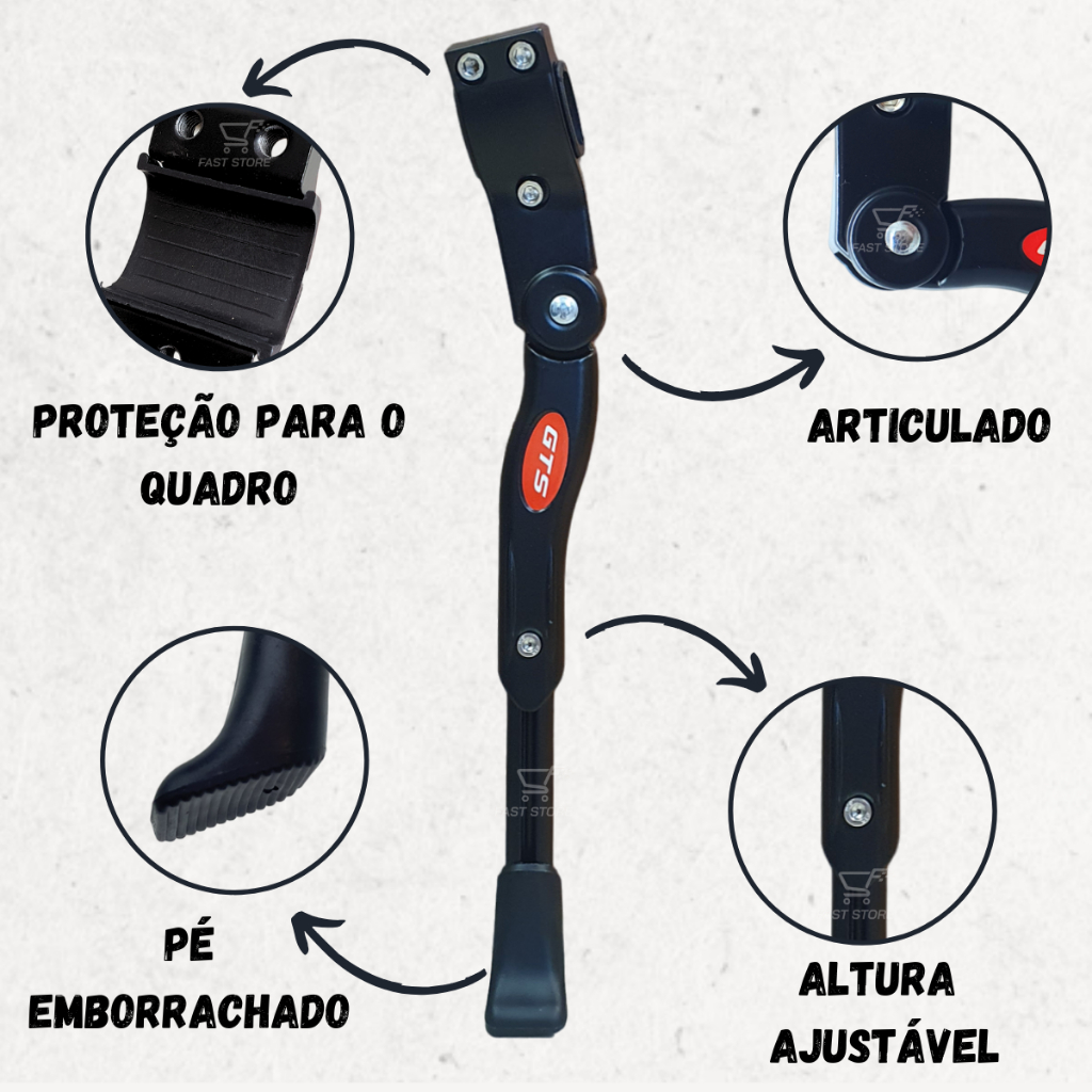 Pezinho Descanso Lateral Com Regulagem Gts Para Bicicleta Bike Aro 20 24 26 e 29