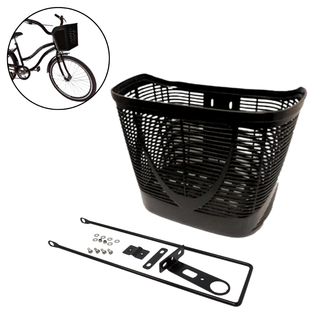 Cesta Cestinha de Plástico para Bicicleta Bike Aro 20 e 26 Grande Preta Resistente Reforçada