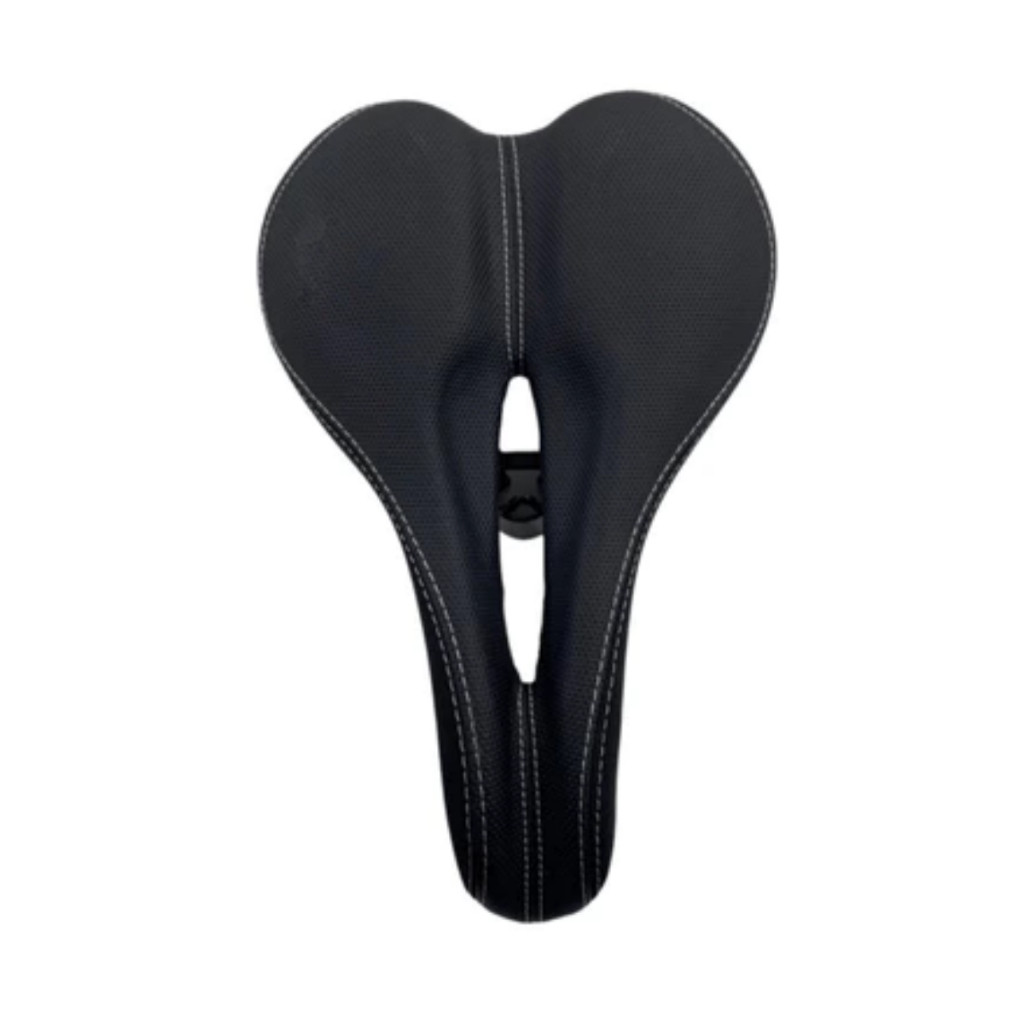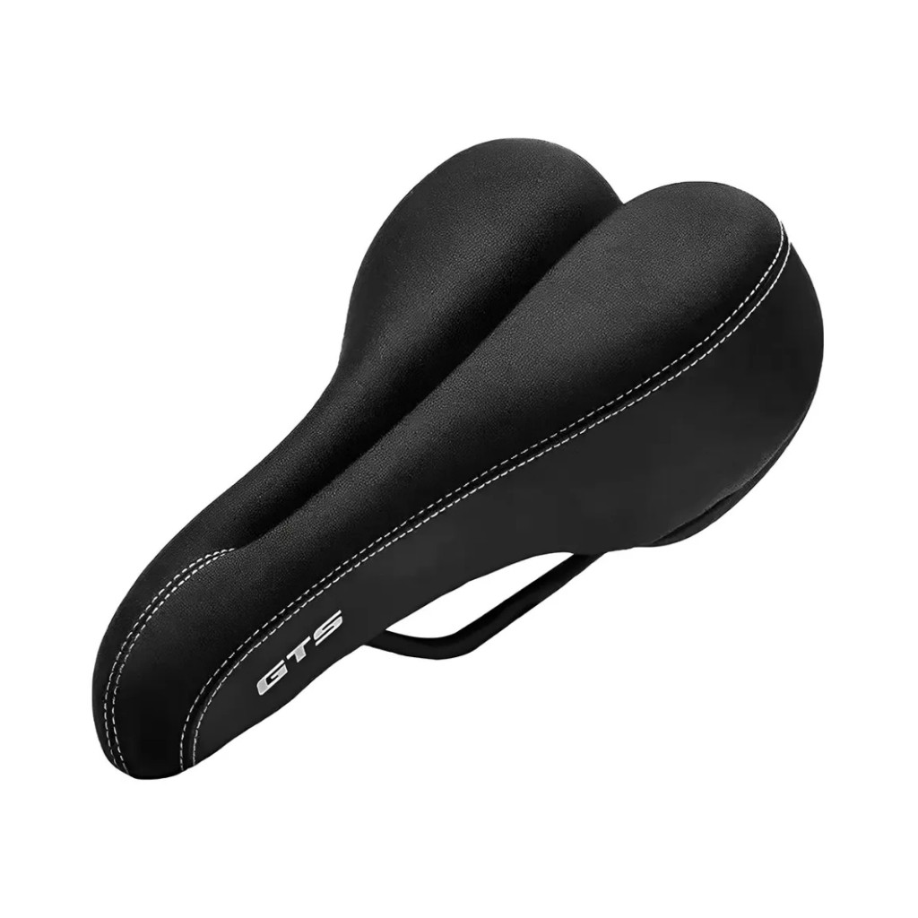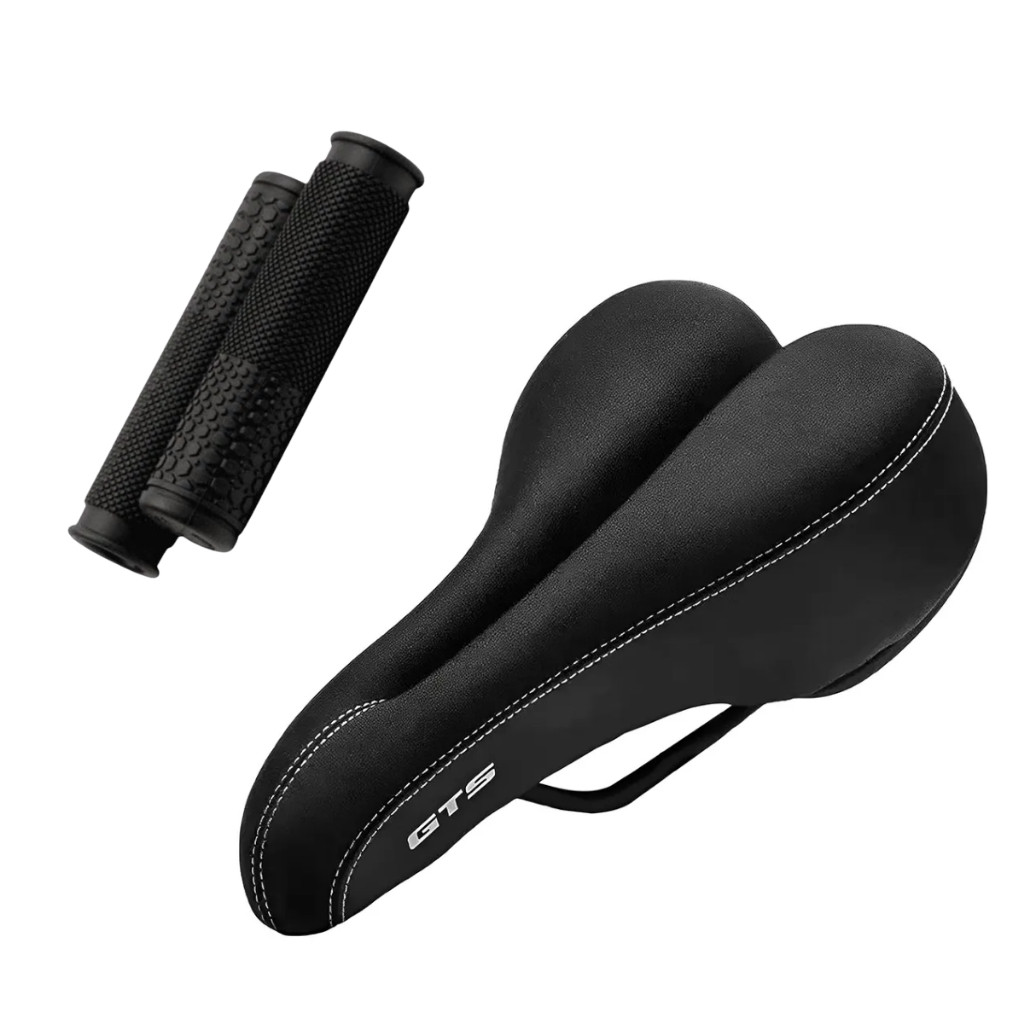 Kit Selim Banco Bike Mtb Vazado Couro E Veludo Confortável Gts Com Manoplas Modelo Preta