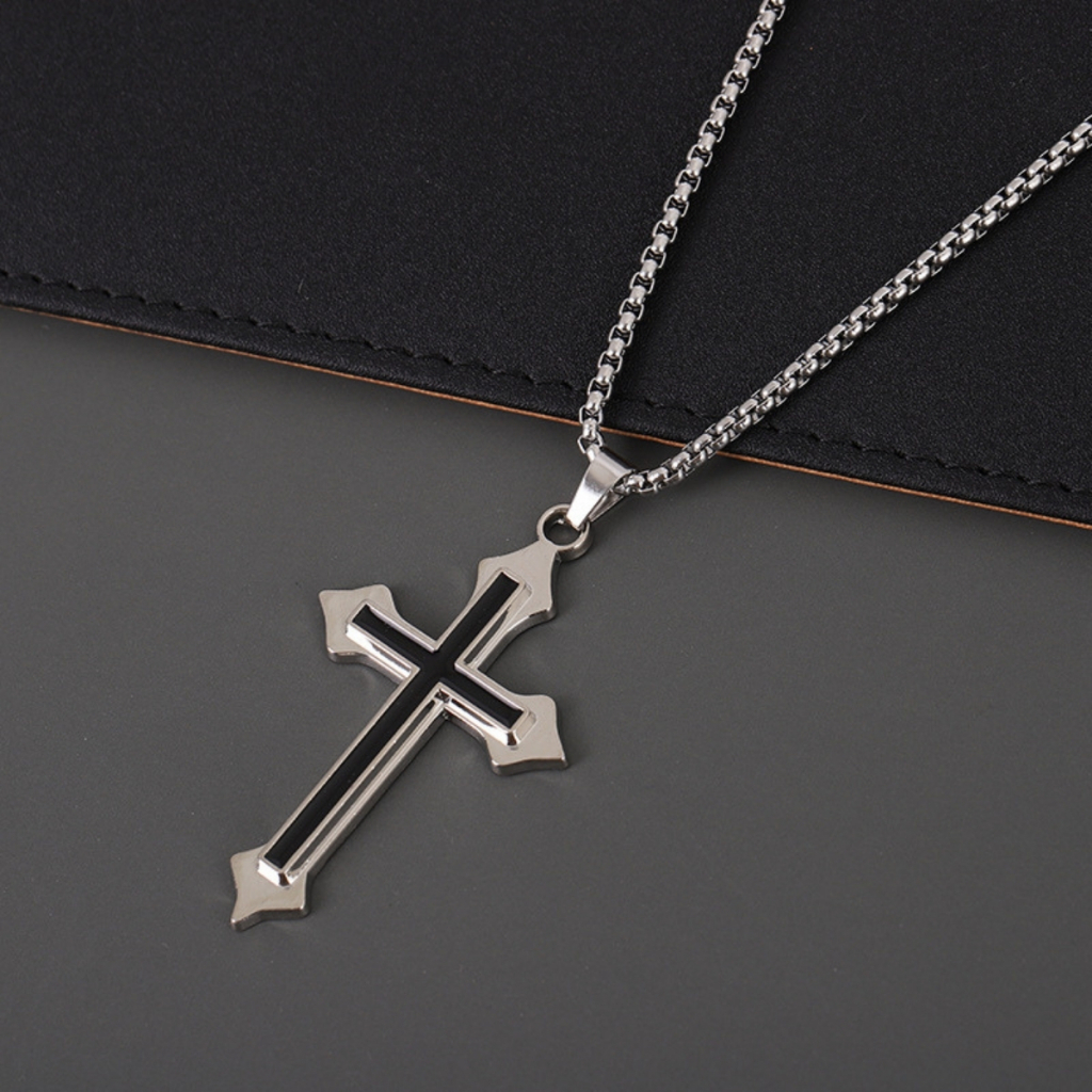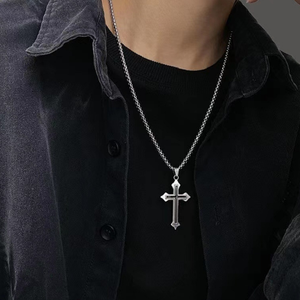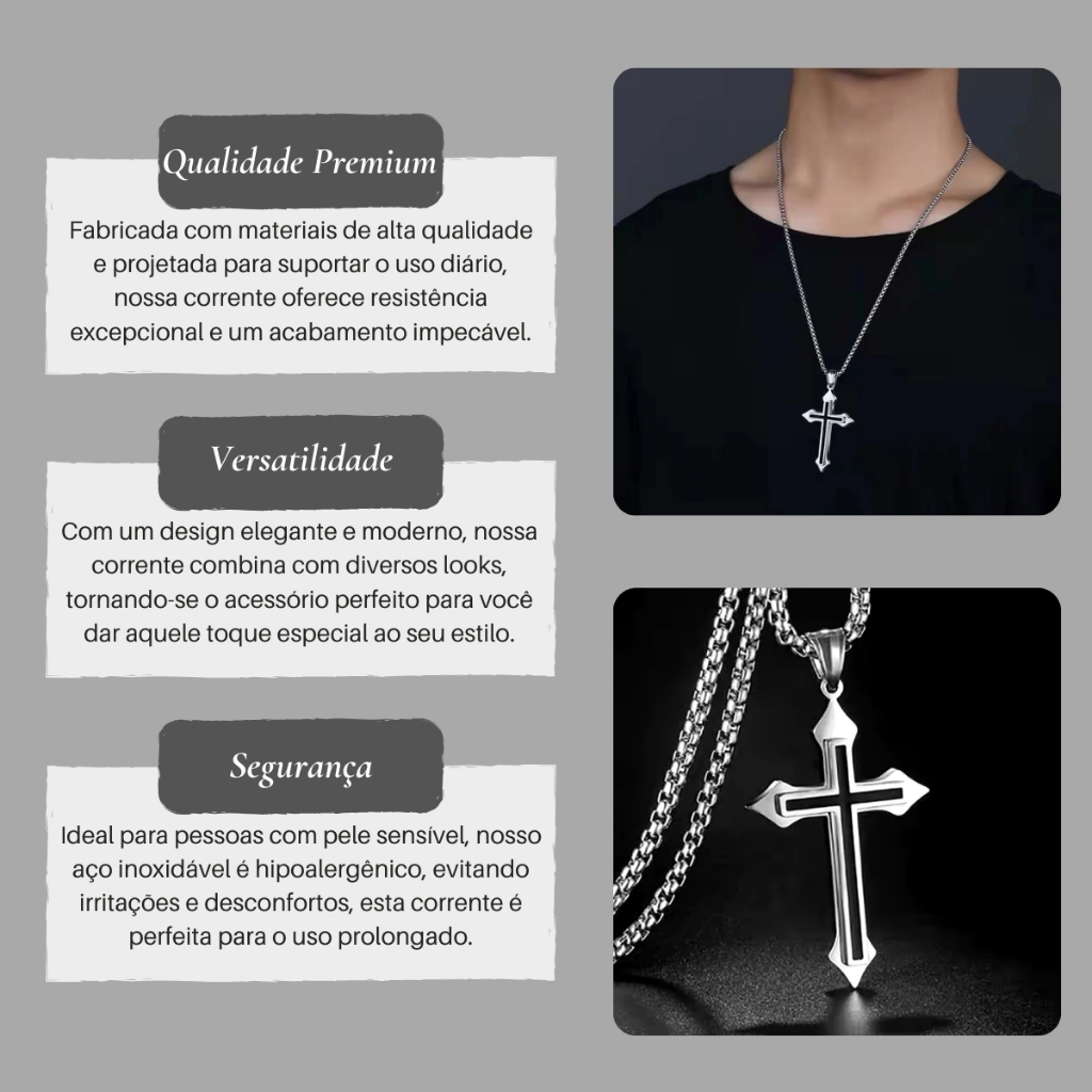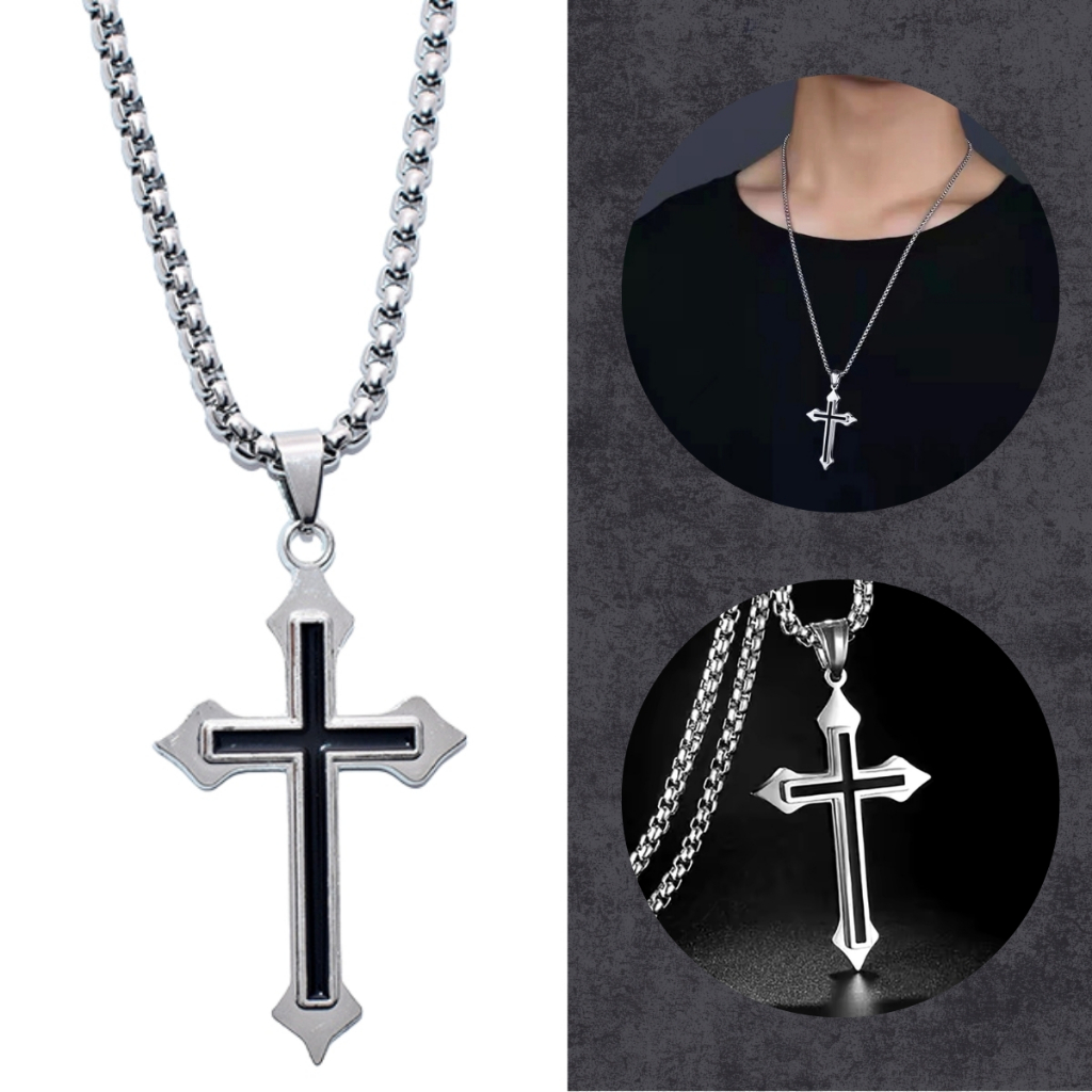 Corrente Colar Prateado Masculino Feminino Unissex Liga de Aço + Pingente Cruz Black