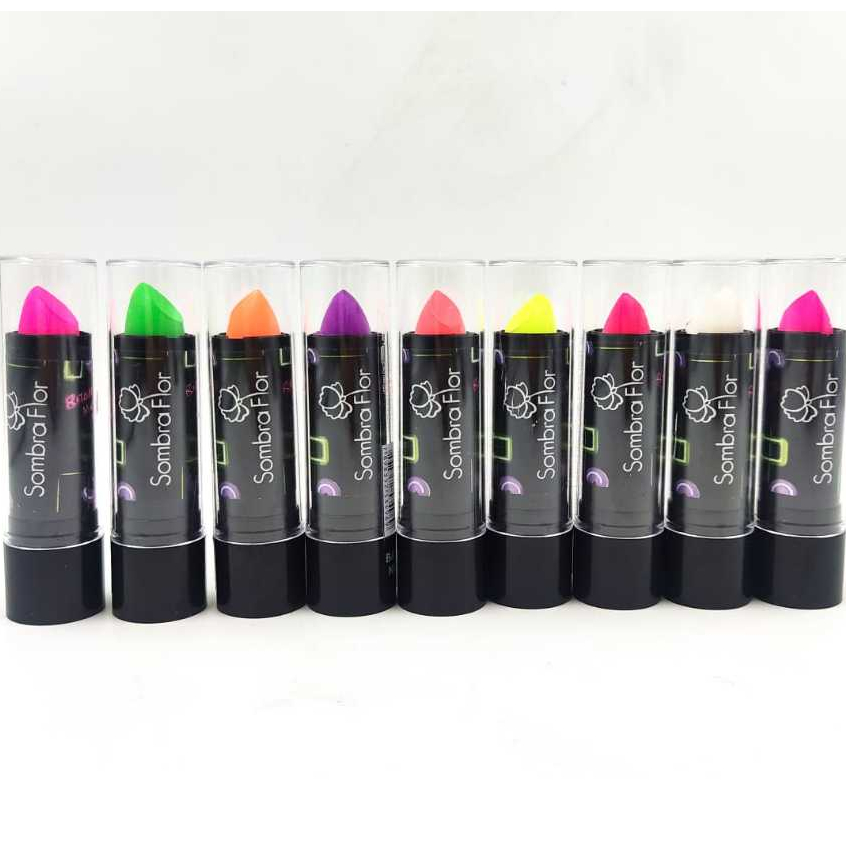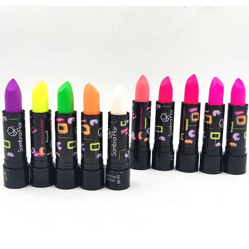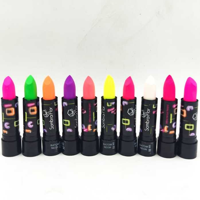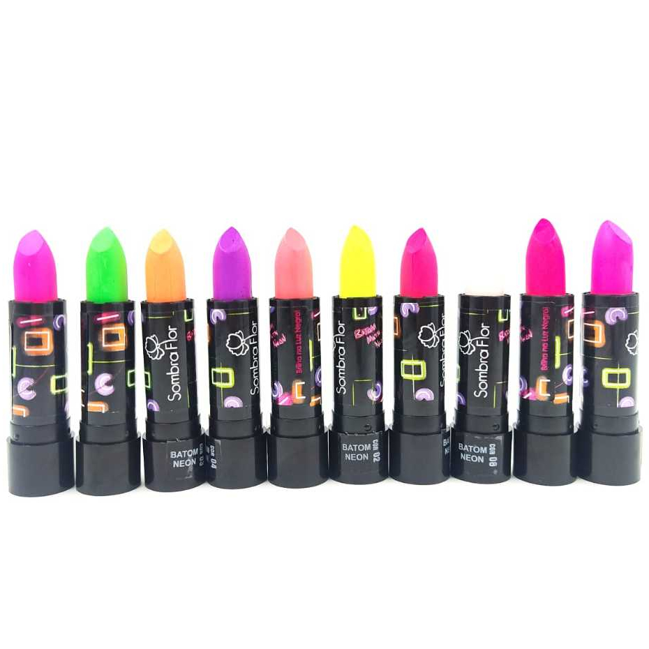 Kit/10 sombra flor batom matte neon Brilha Luz negra Festa Neon10 cores