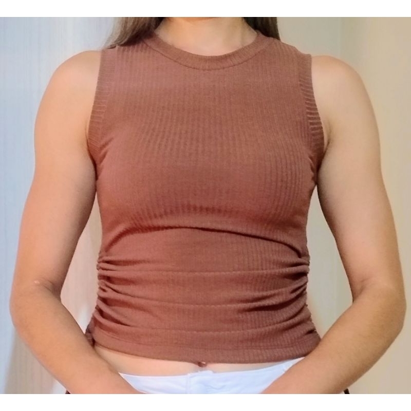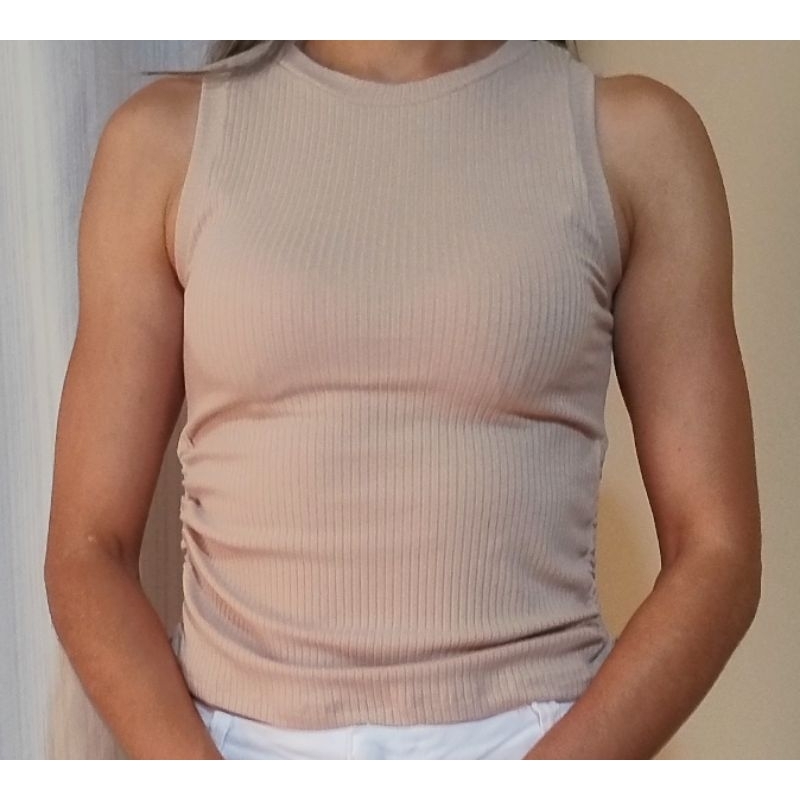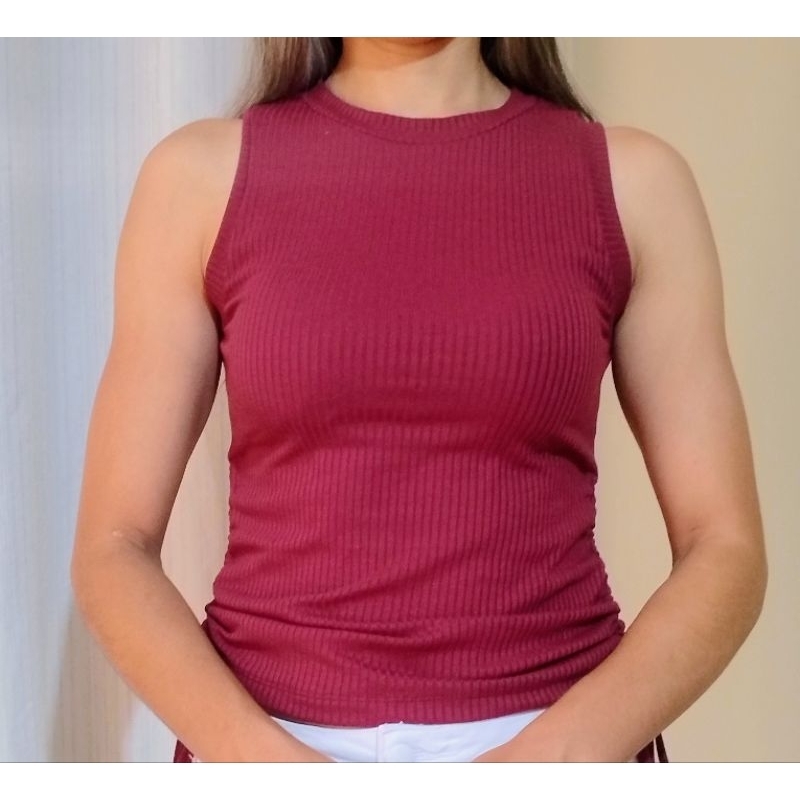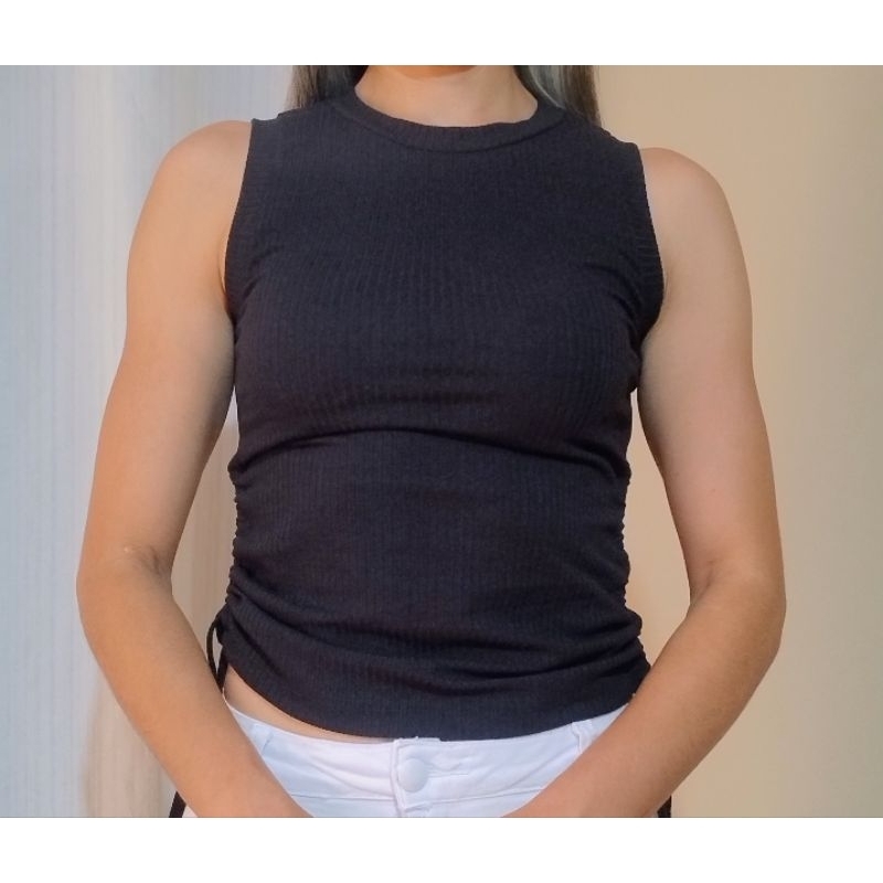 Blusa regata feminina amarração lateral regata de malha canelada