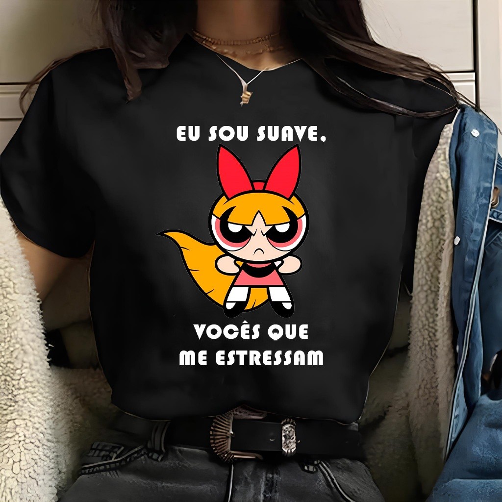 Camiseta Feminina Premium 100% Algodão Meninas Super Poderosas Vocês Estressam Docinho Envio Imediato