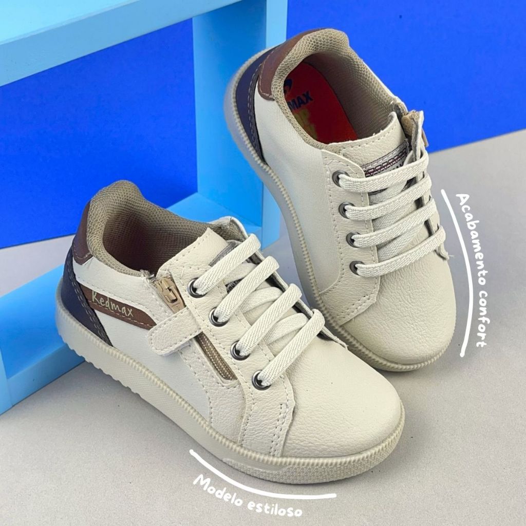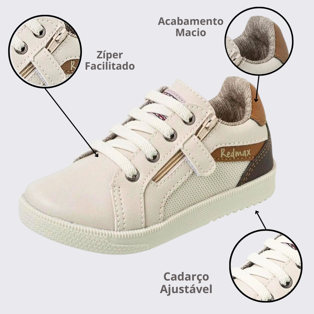 Tênis Infantil Menino Ajuste Zíper e Elastico Macio Leve Bege Escolar Anatômico