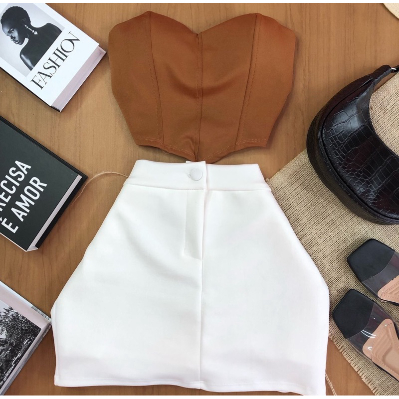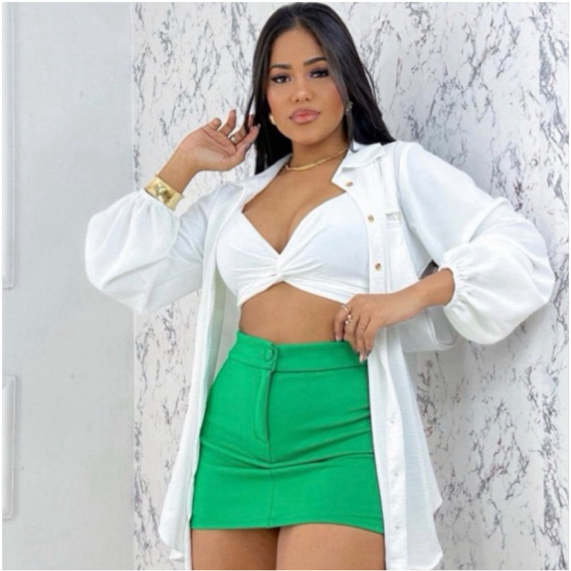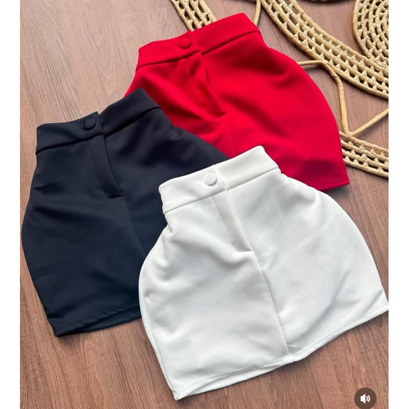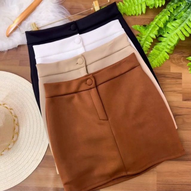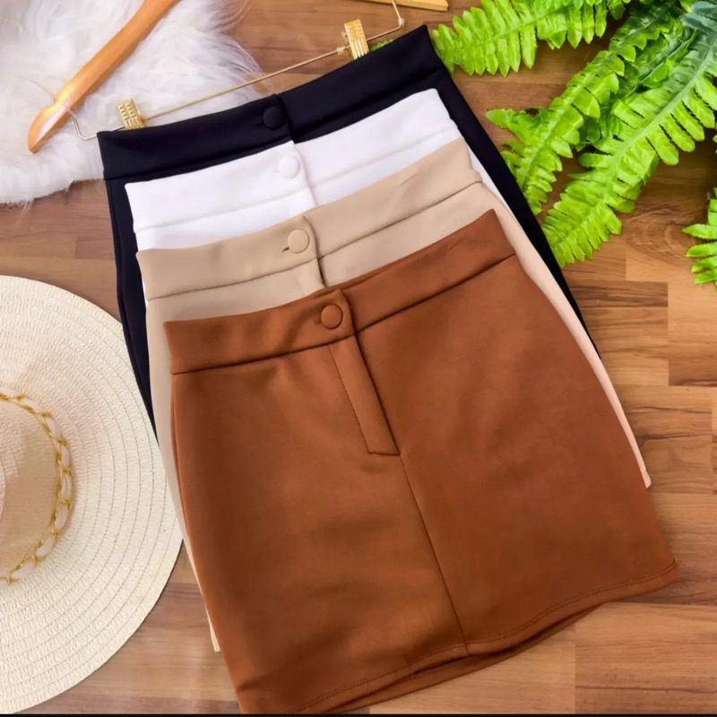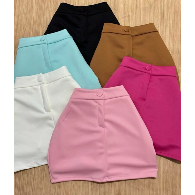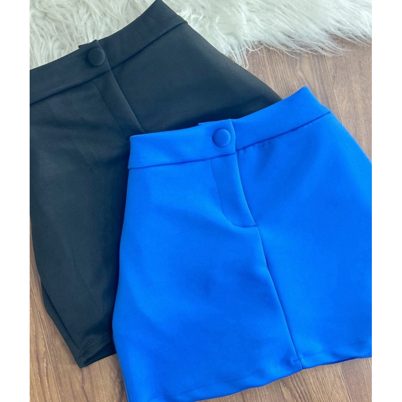 Short Saia Feminino Alfaiataria Cintura Alta com botão Tendência