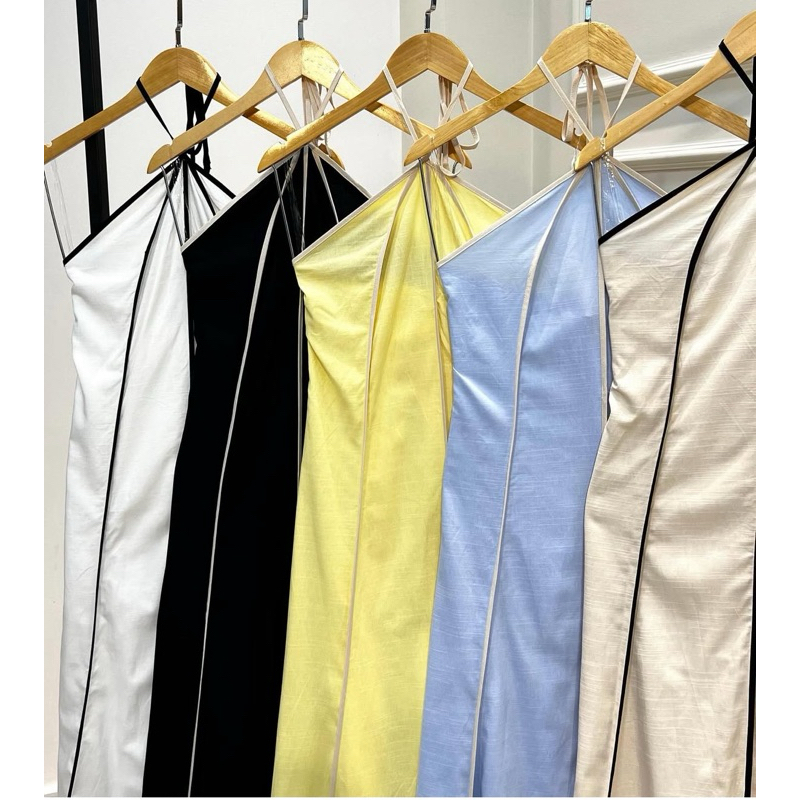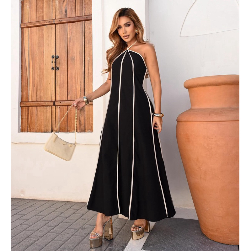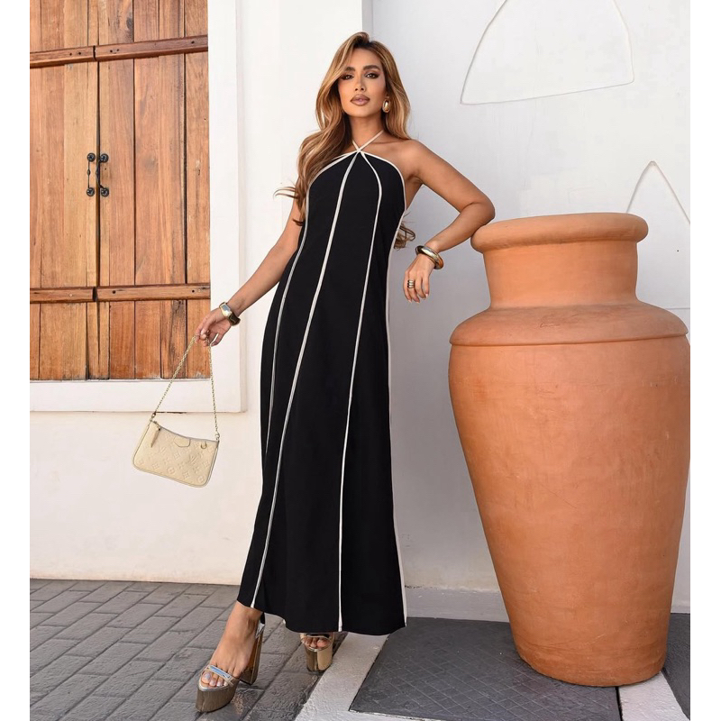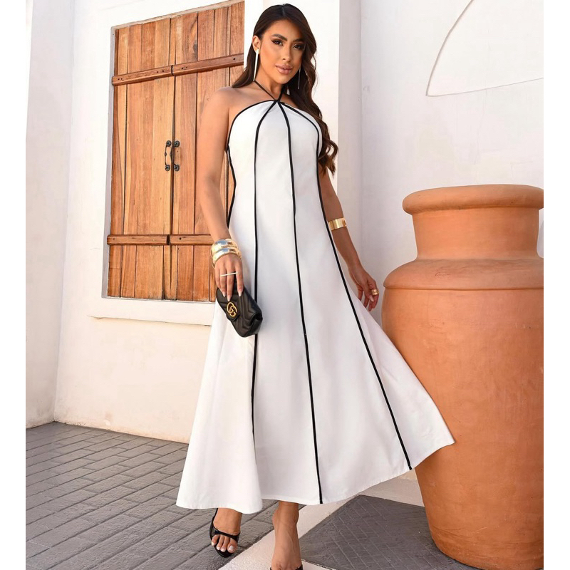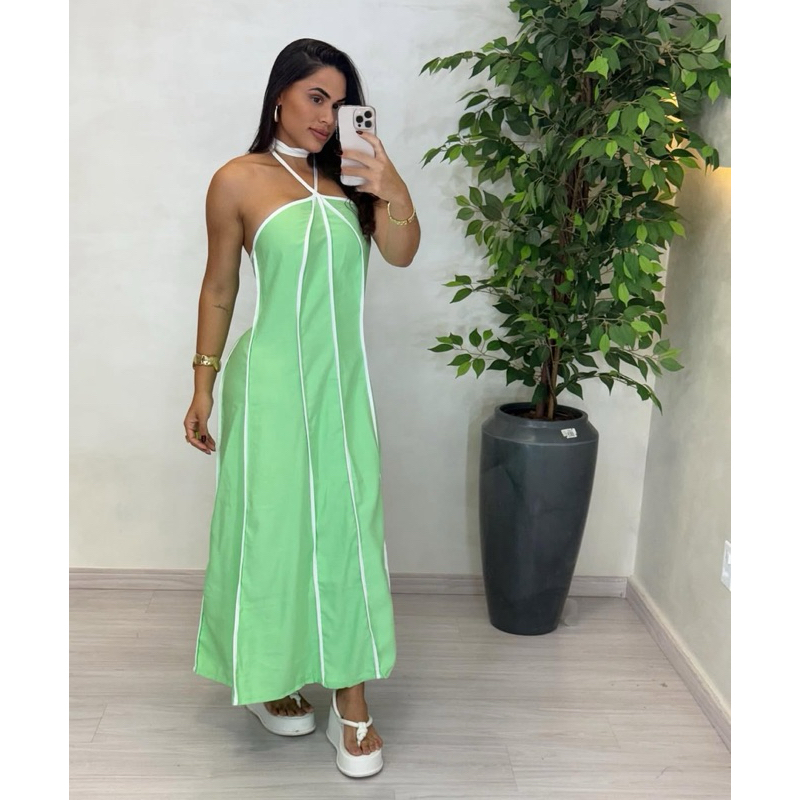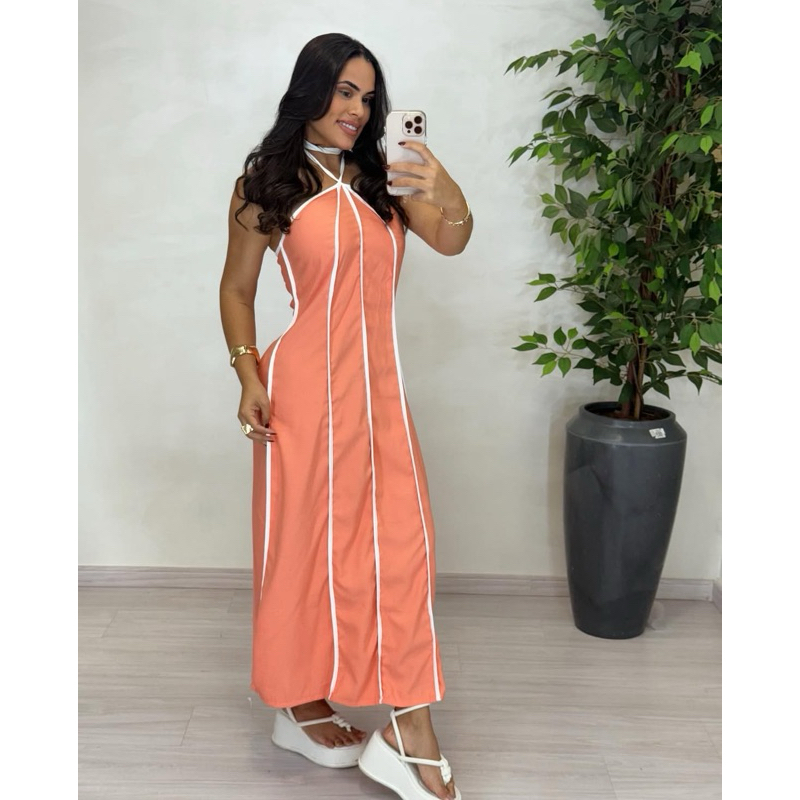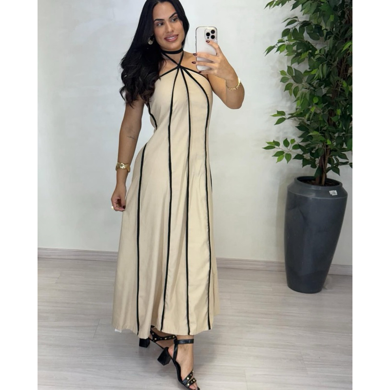 Vestido feminino longo Listrado Tomara que Caia amarração no pescoço tendência primavera verão
