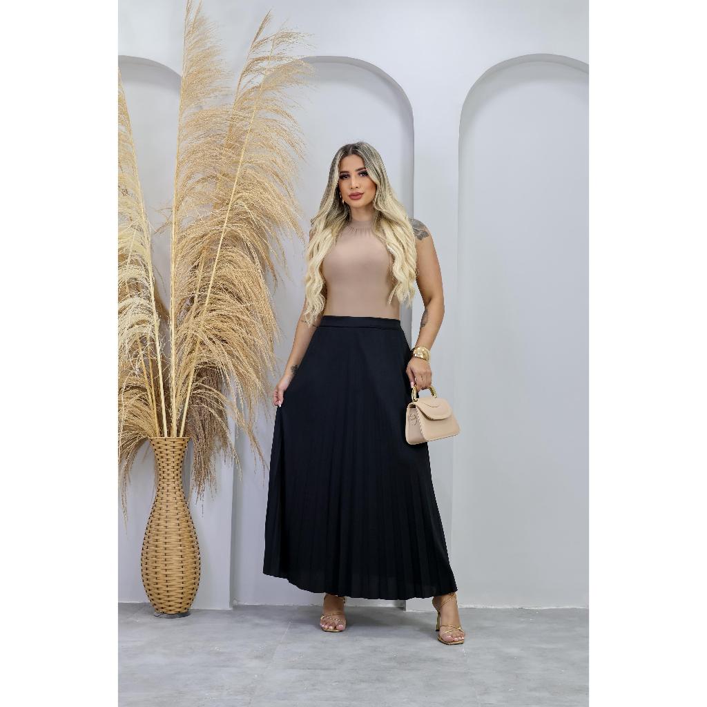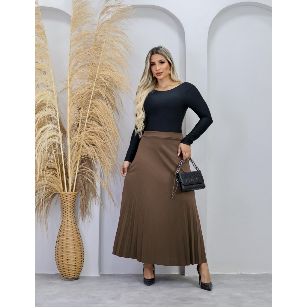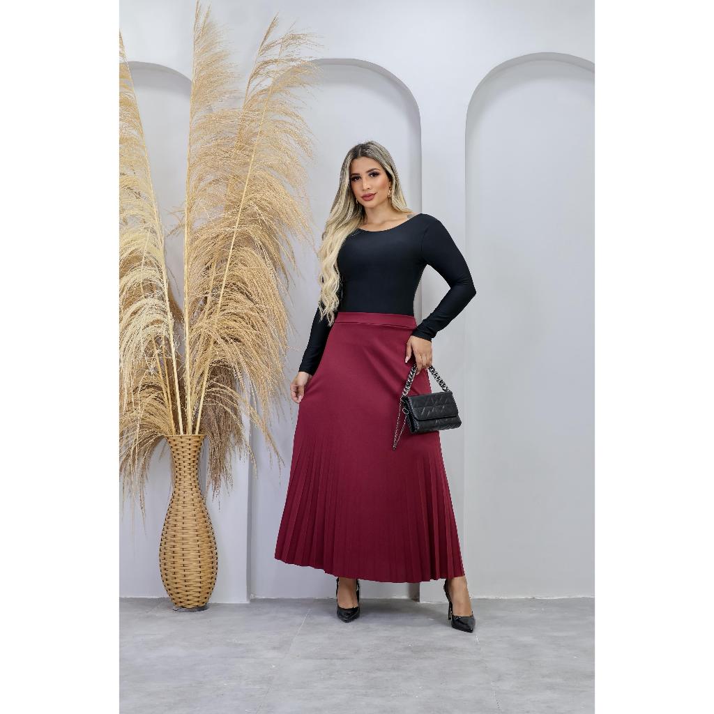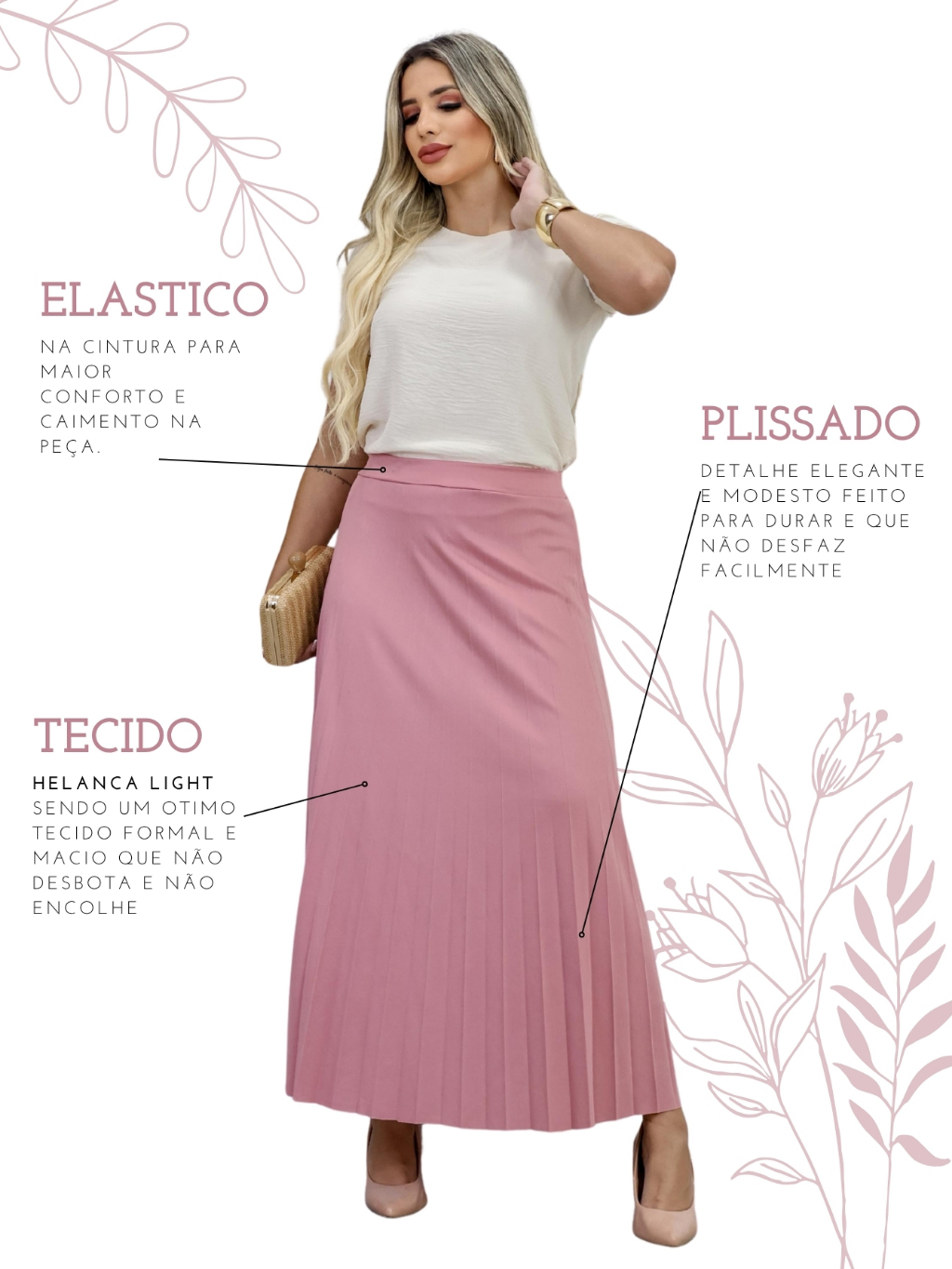 Saia Feminina Longa Plissado com Forro e Elastico na Cintura Moda Crista e Evangelica