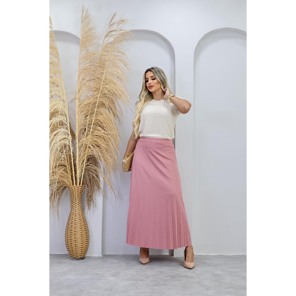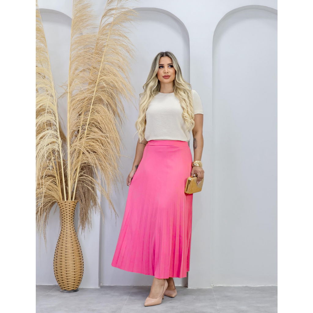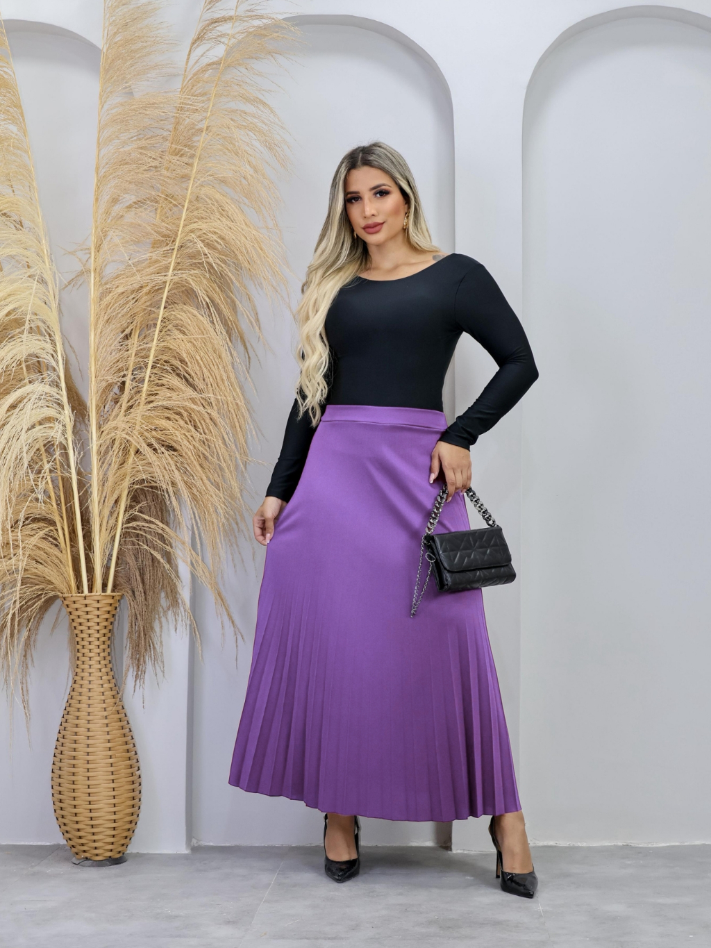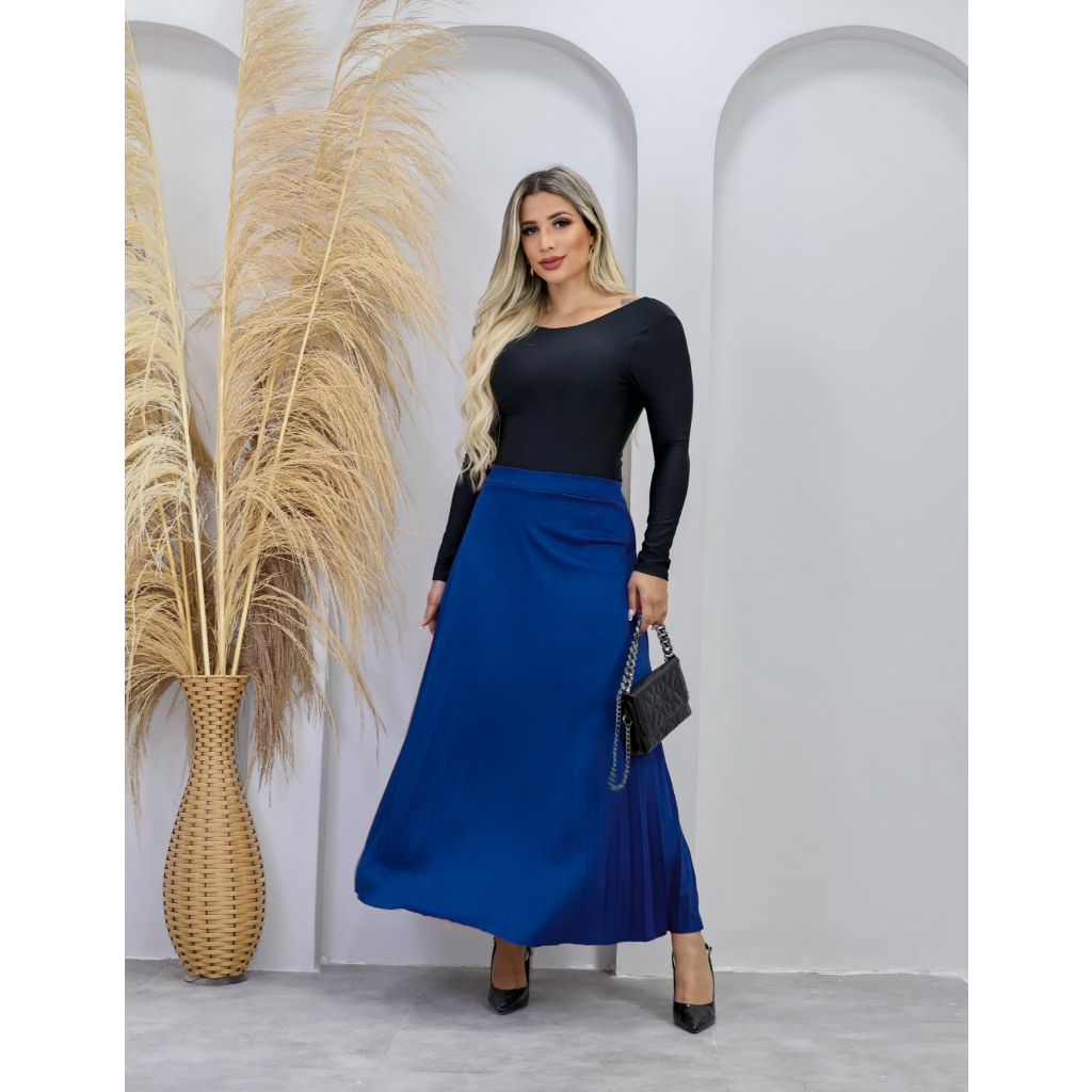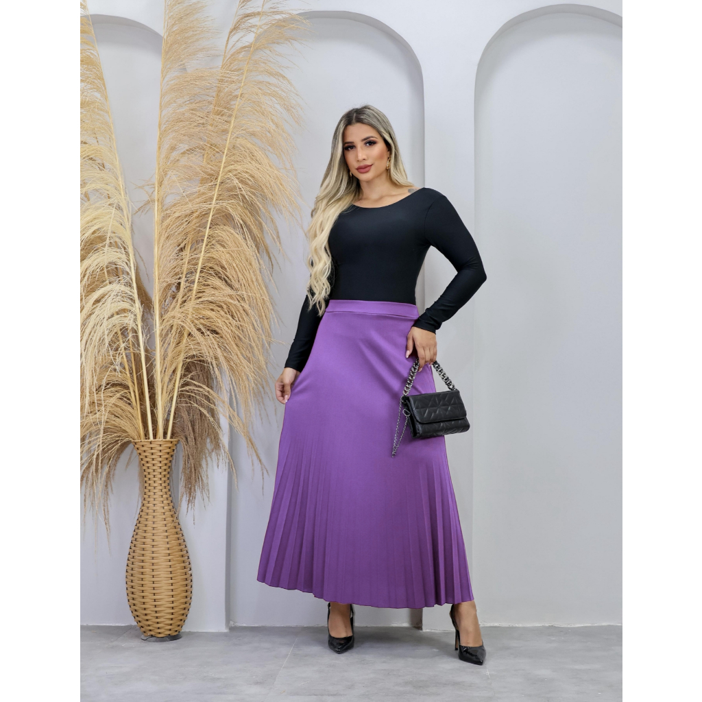 Saia Feminina Longa Plissado com Forro e Elastico na Cintura Moda Crista e Evangelica