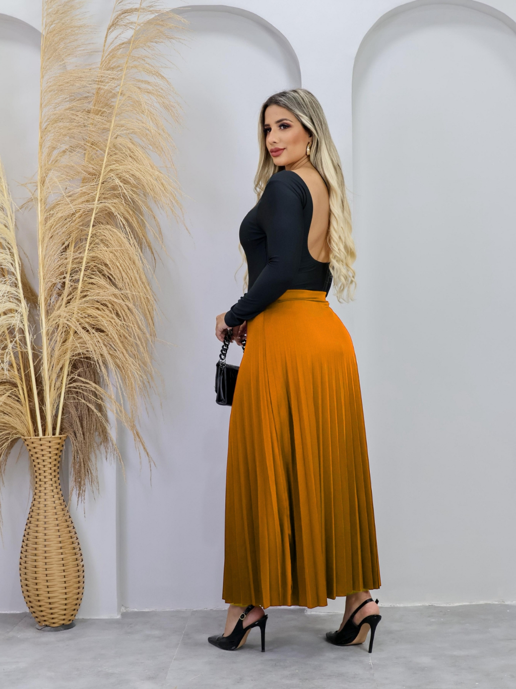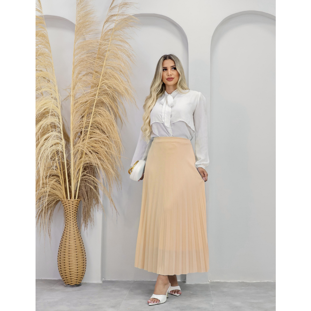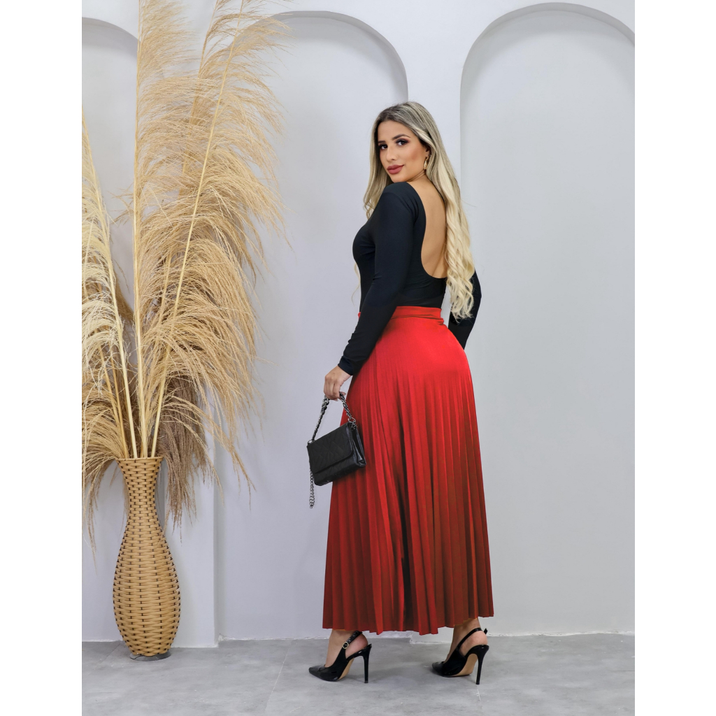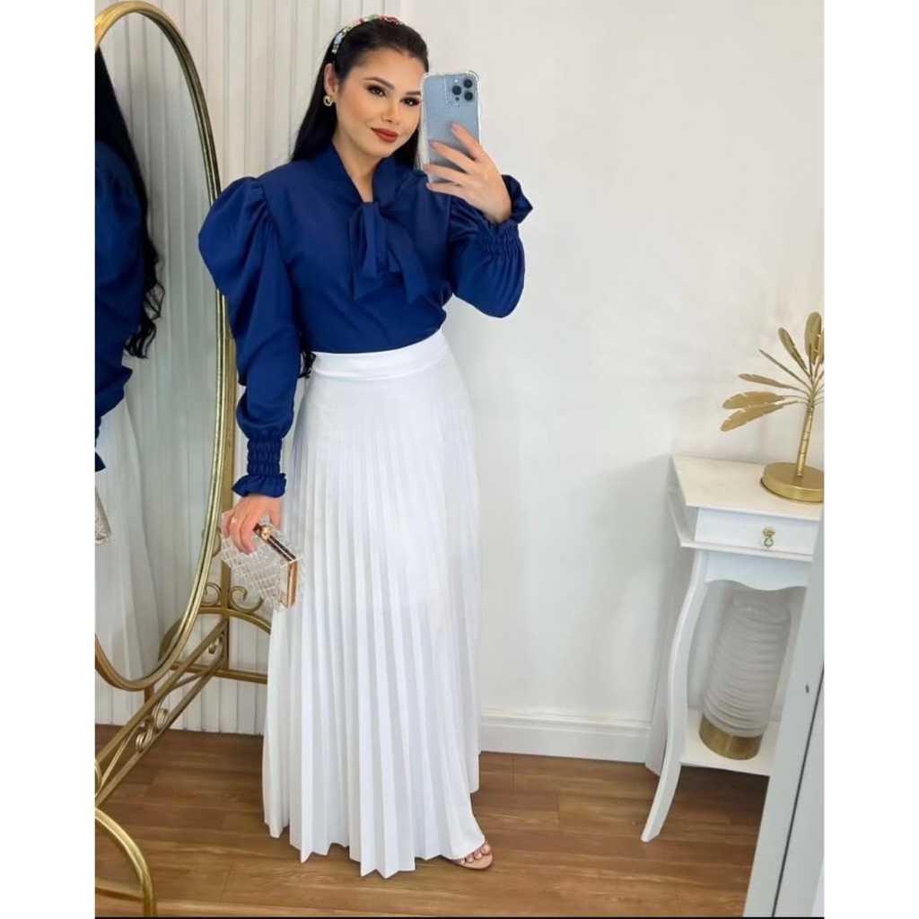 Saia Feminina Longa Plissado com Forro e Elastico na Cintura Moda Crista e Evangelica