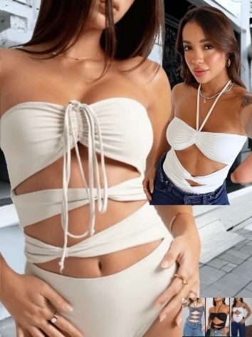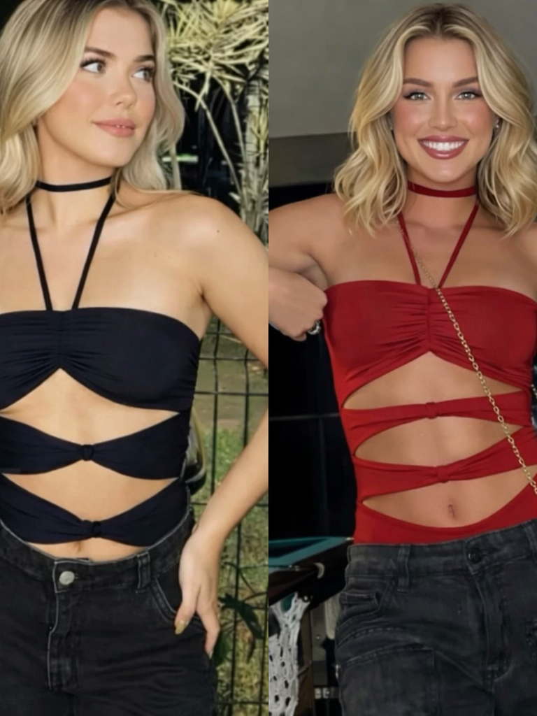 Body Feminino Sexi Gringa Recortes Profundos 3 Tiras com Amarração Ajustável para Festa e Balada