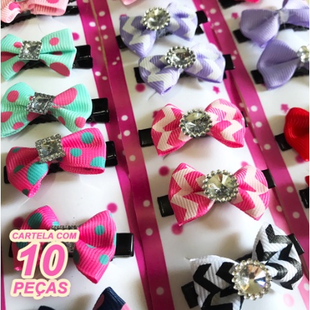10 Presilhas Lacinho e Pedrinha Bico de Pato Laço