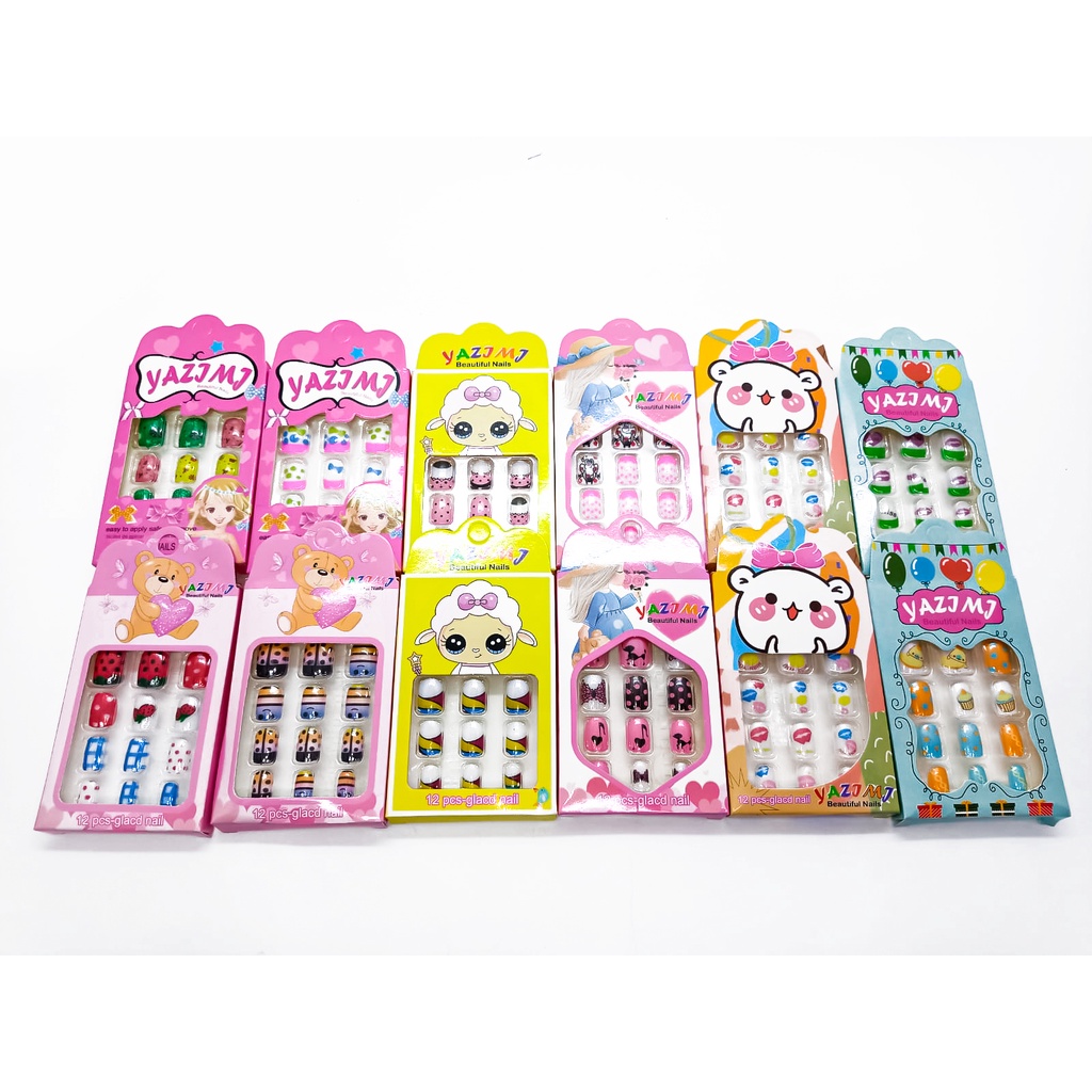Kit 12 Caixas de unhas postiças infantil com Adesivo - Cada caixa com 12 Unhas