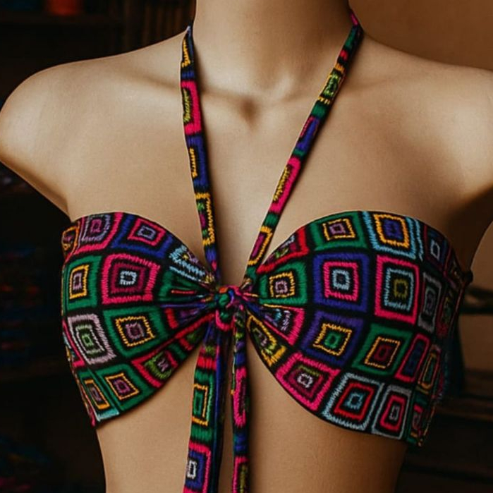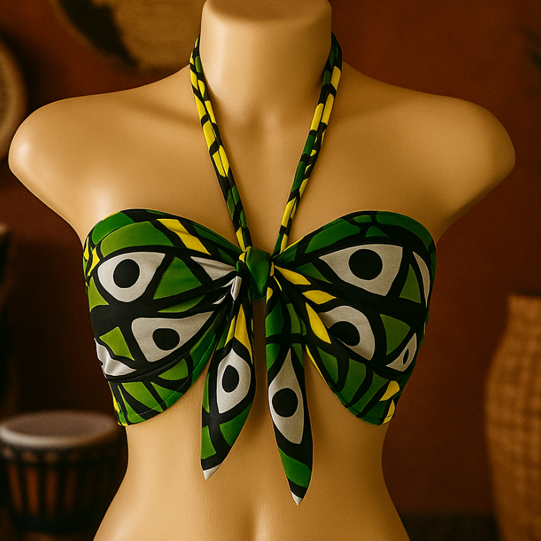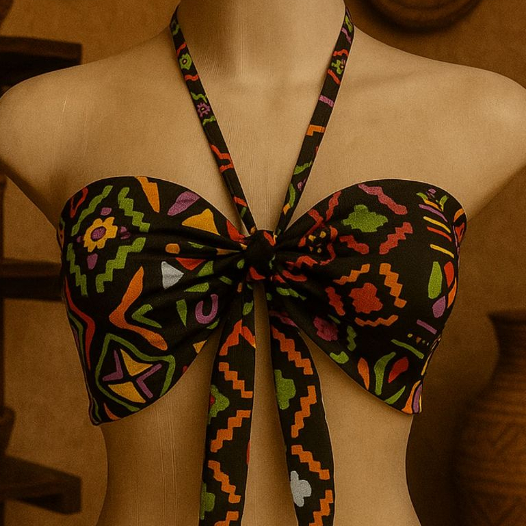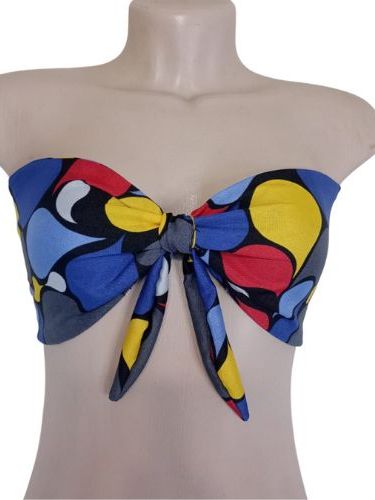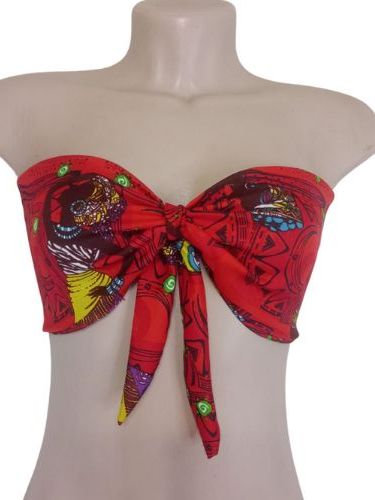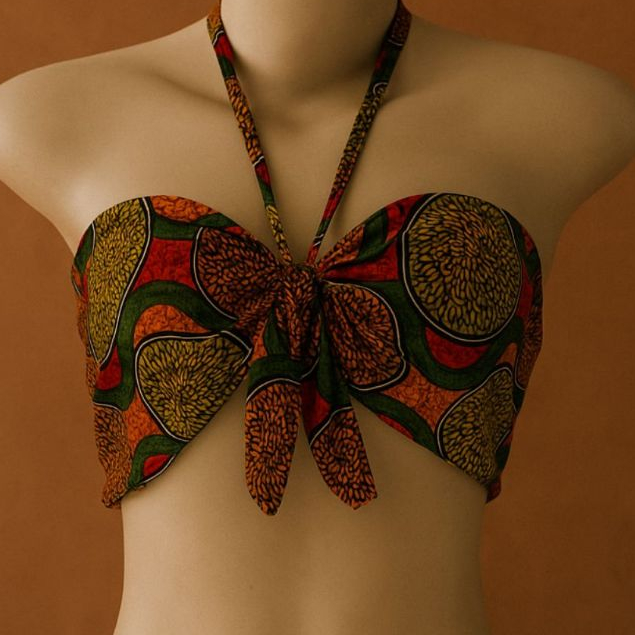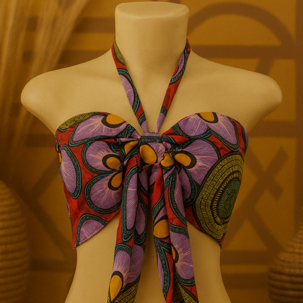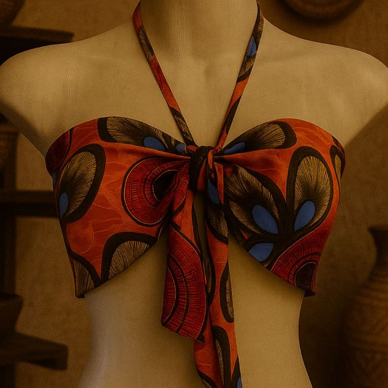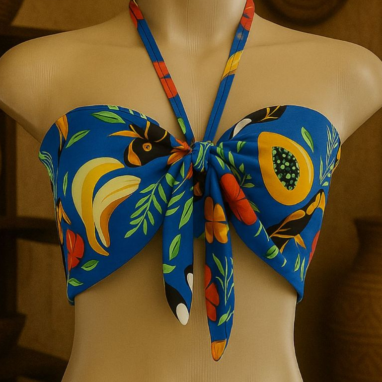 Blusa Cropped Feminino Top Faixa Tomara que Caia Estilo Africano Com Amaraçao Frontal