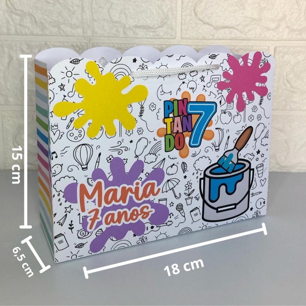 Lembrancinha Personalizada para Festa - Sacolinha Tema Pintando o Sete/ Festa das Cores