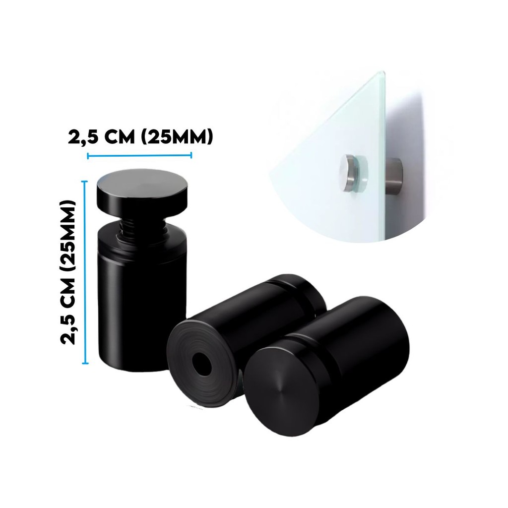 Kit com 4 Prolongador 2,5x2,5cm Preto em Aço Inox para Vidro Madeira Acrílico Fácil Instalação Painel