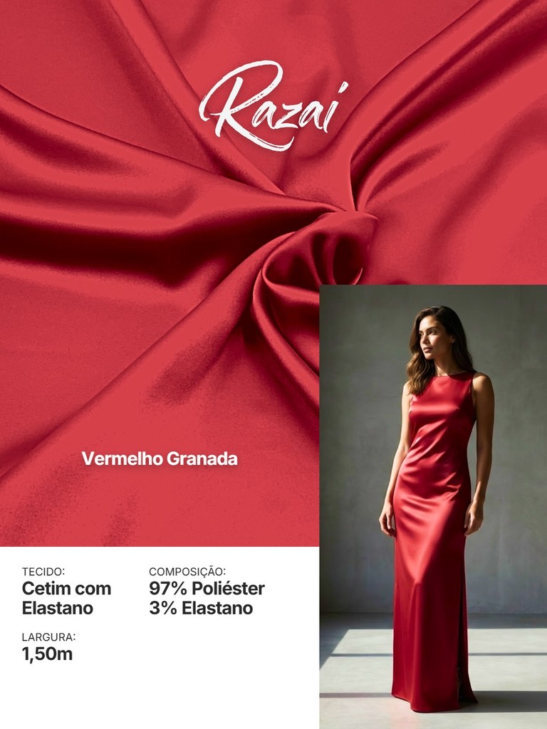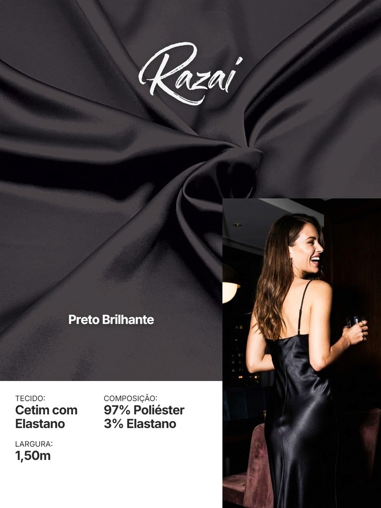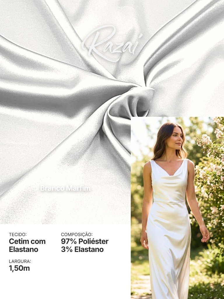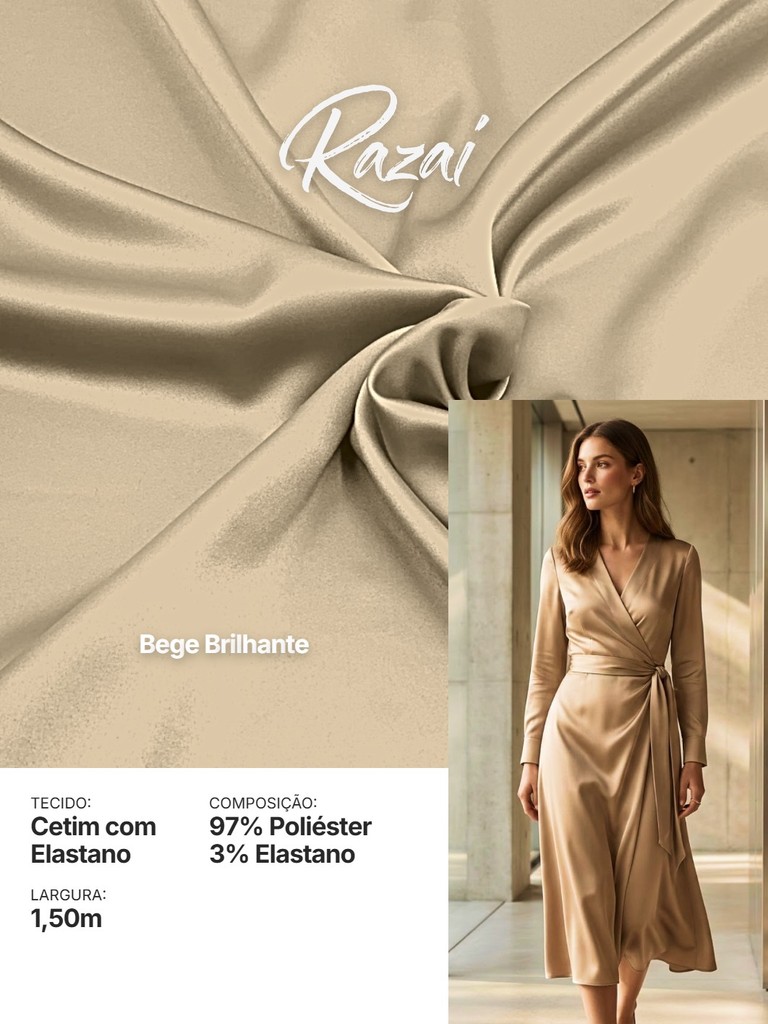 Tecido Cetim com Elastano RAZAI Premium | 97% Poliéster e 3% Elastano | Brilho e Conforto