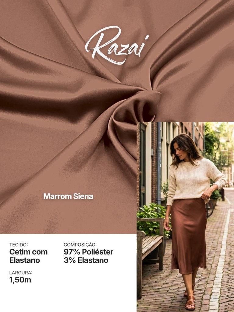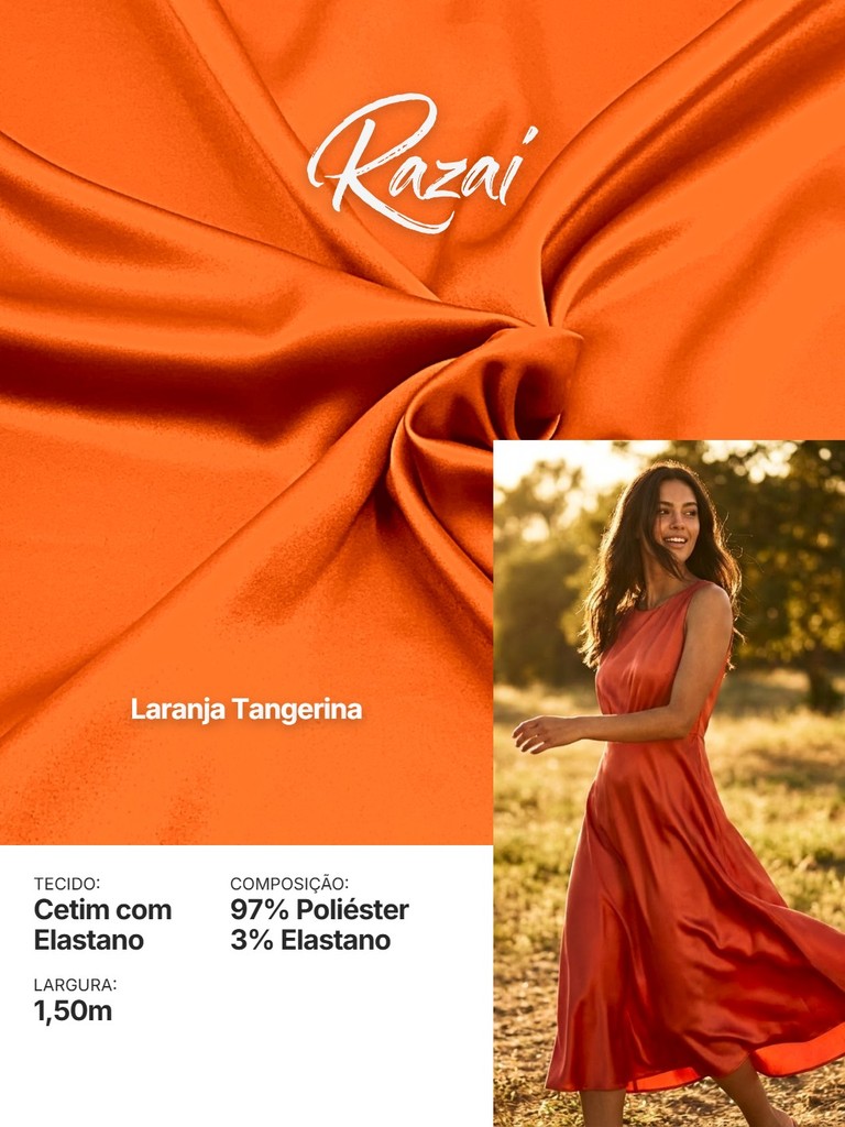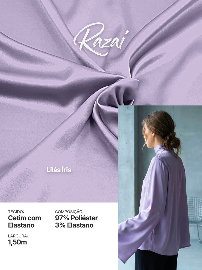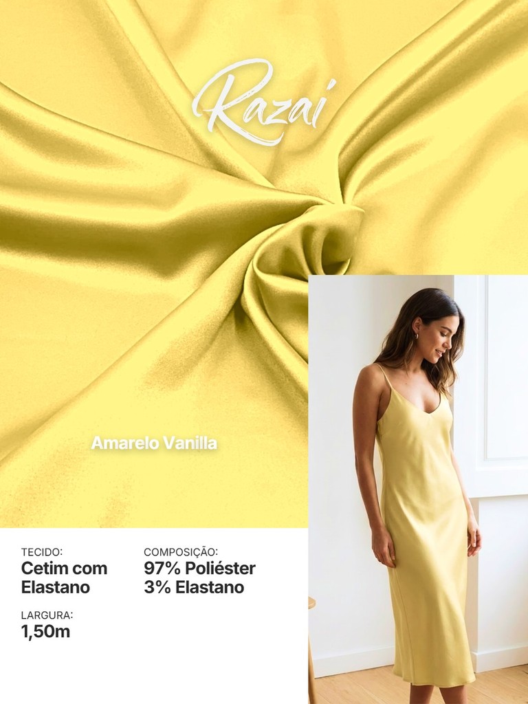 Tecido Cetim com Elastano RAZAI Premium | 97% Poliéster e 3% Elastano | Brilho e Conforto