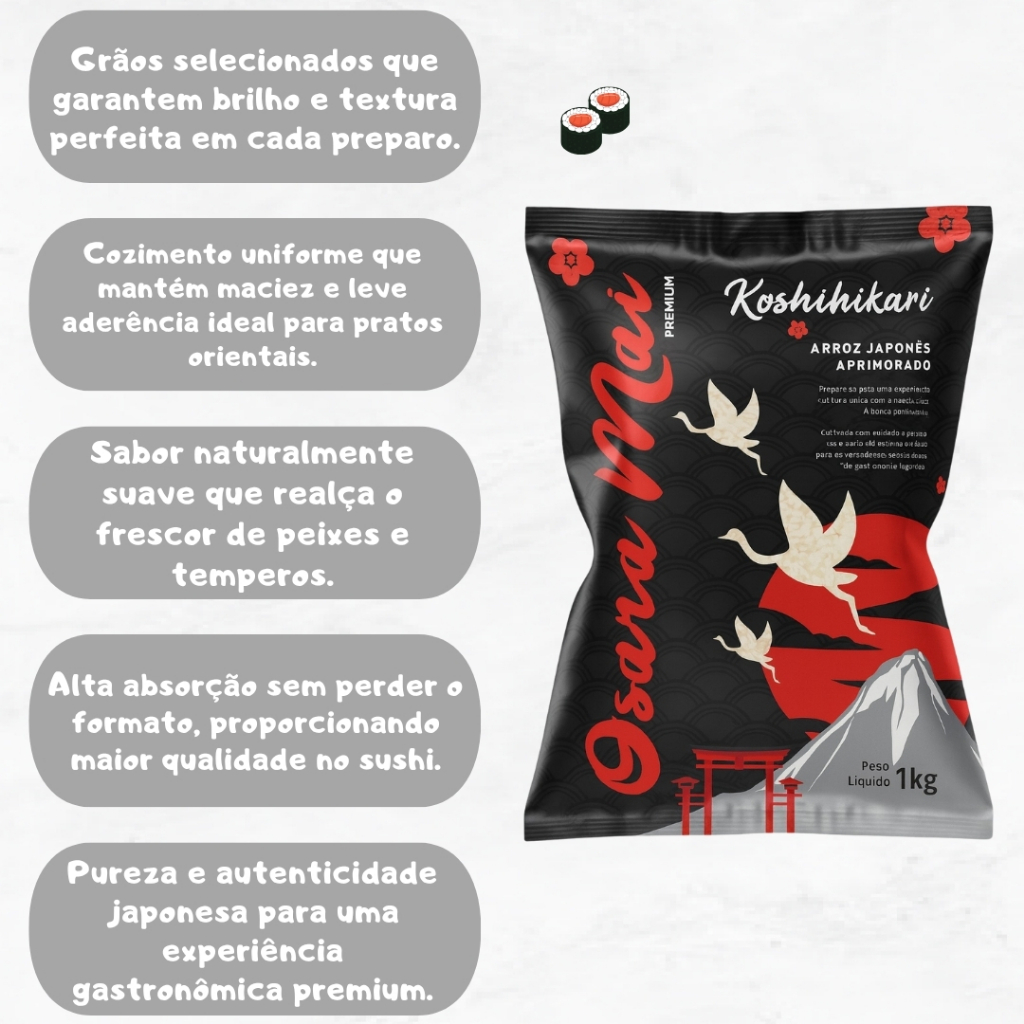 Kit Sushi Simples Arroz Grão Curto Koshihikari Sushi + Alga Nori 10 Folhas + Vinagre de Arroz 750 ml