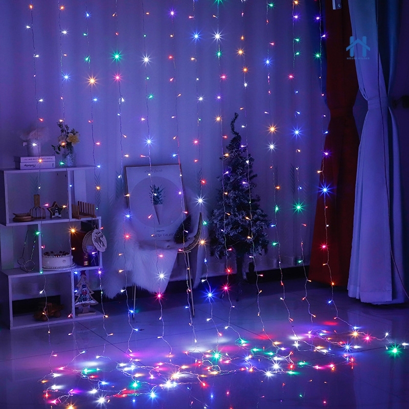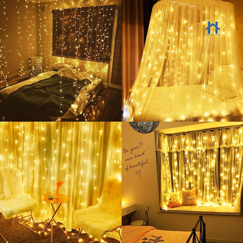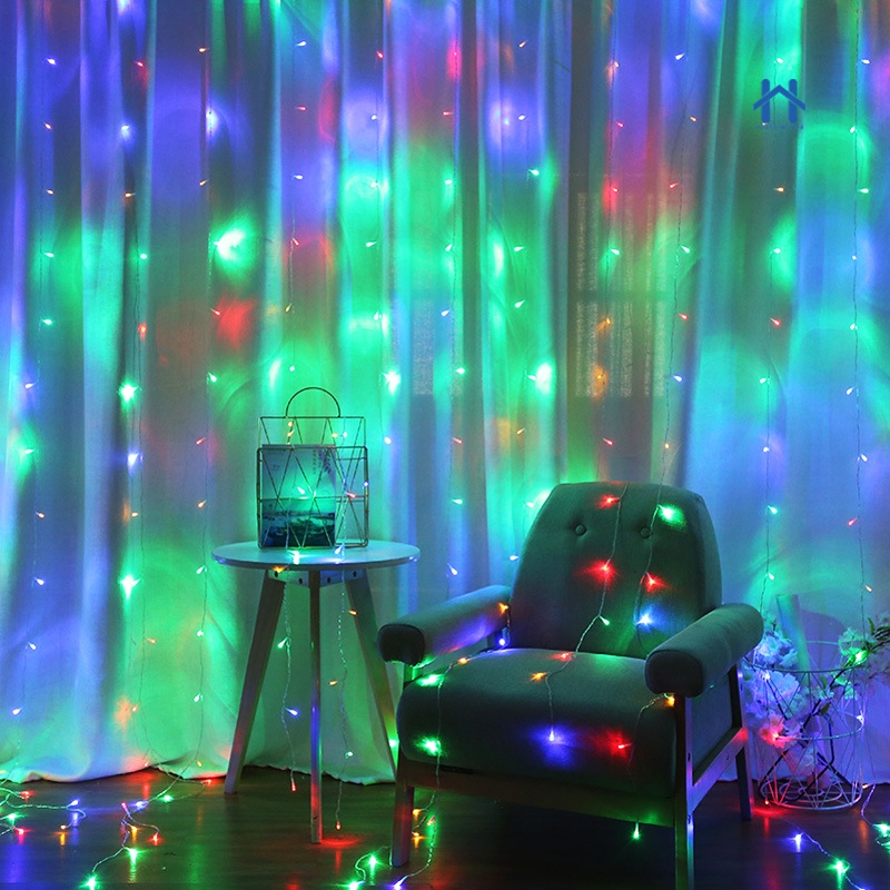 Cortina 300 Led 3x2 metros Pisca Pisca Fixo ou 8 Funções Fio Branco 110V/220V Marca V8