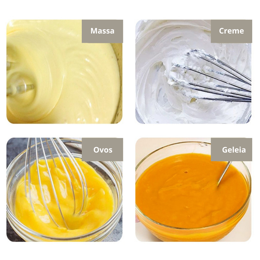 Mixer Misturador Elétrico de Mão para Ovos e Bebidas Sem Fio com 3 Velocidades e Triturador