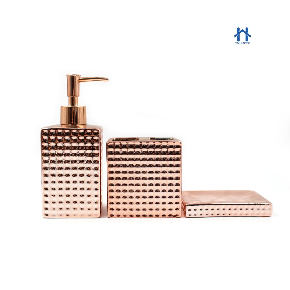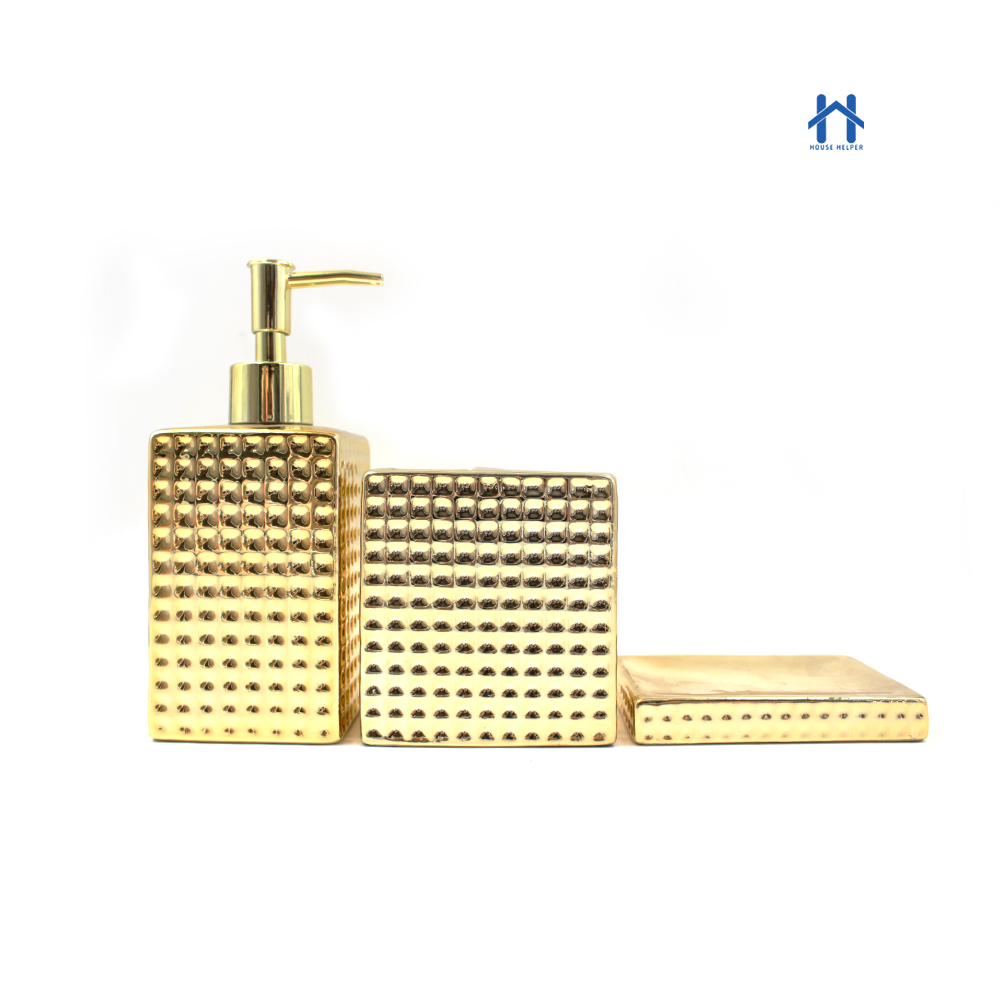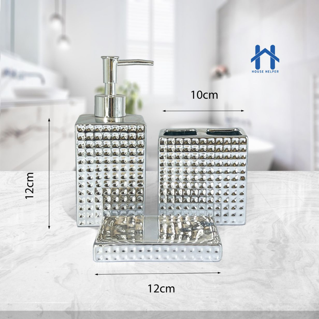 Kit Para Banheiro Cerâmica 3 Peças Porta Sabonete Líquido /Saboneteira/Porta Escova - 395C